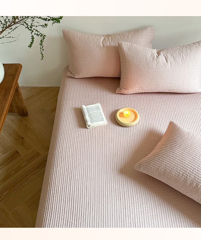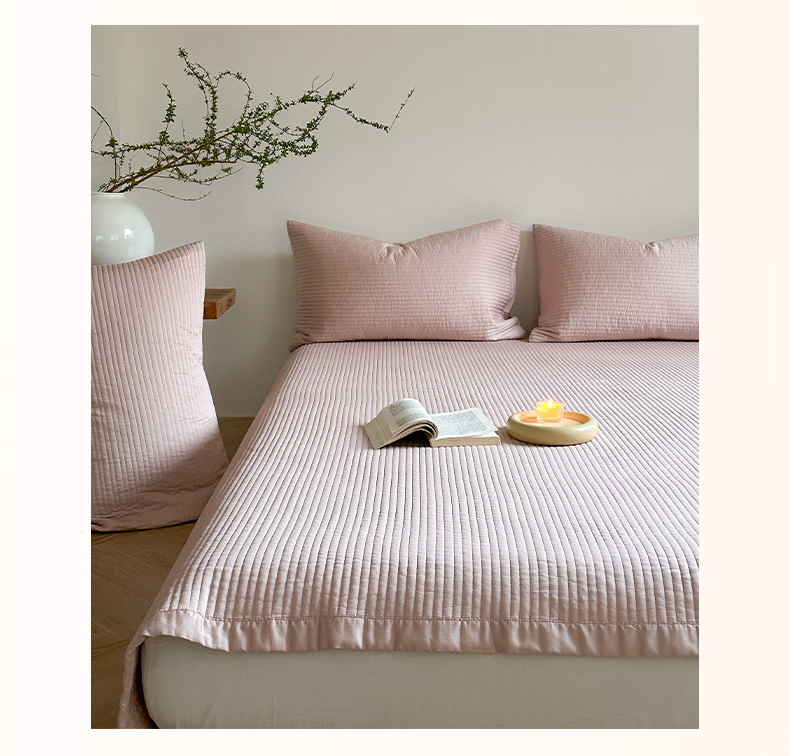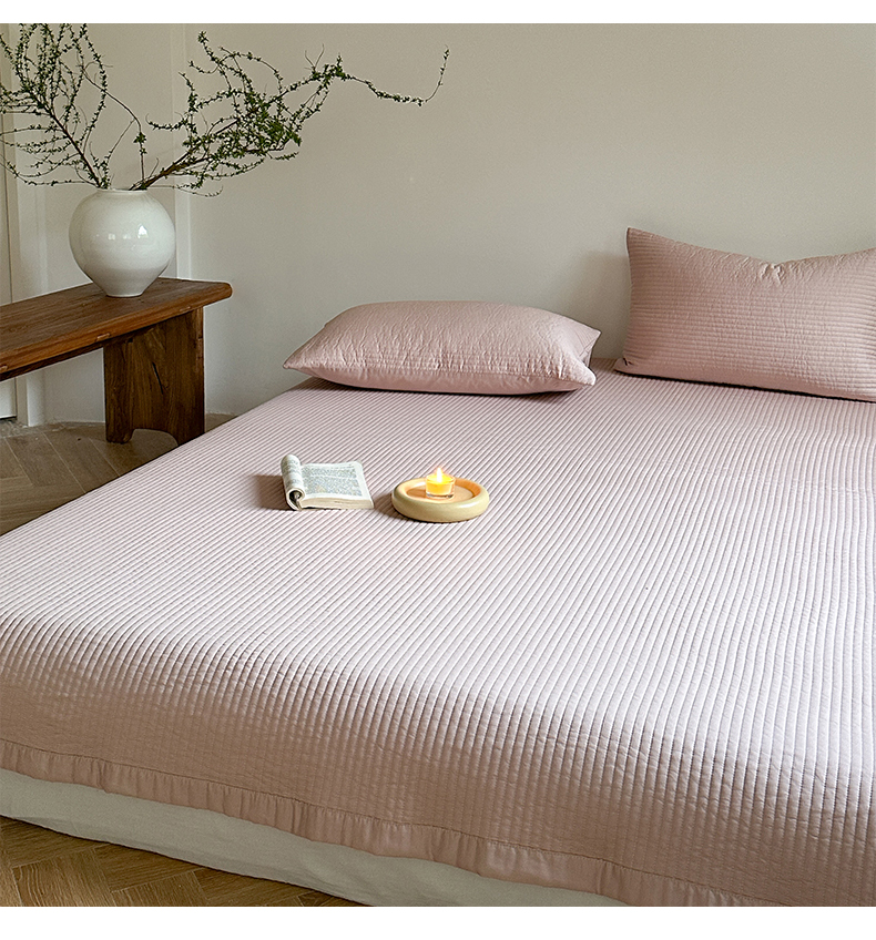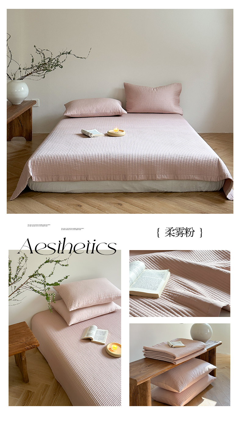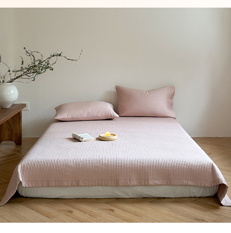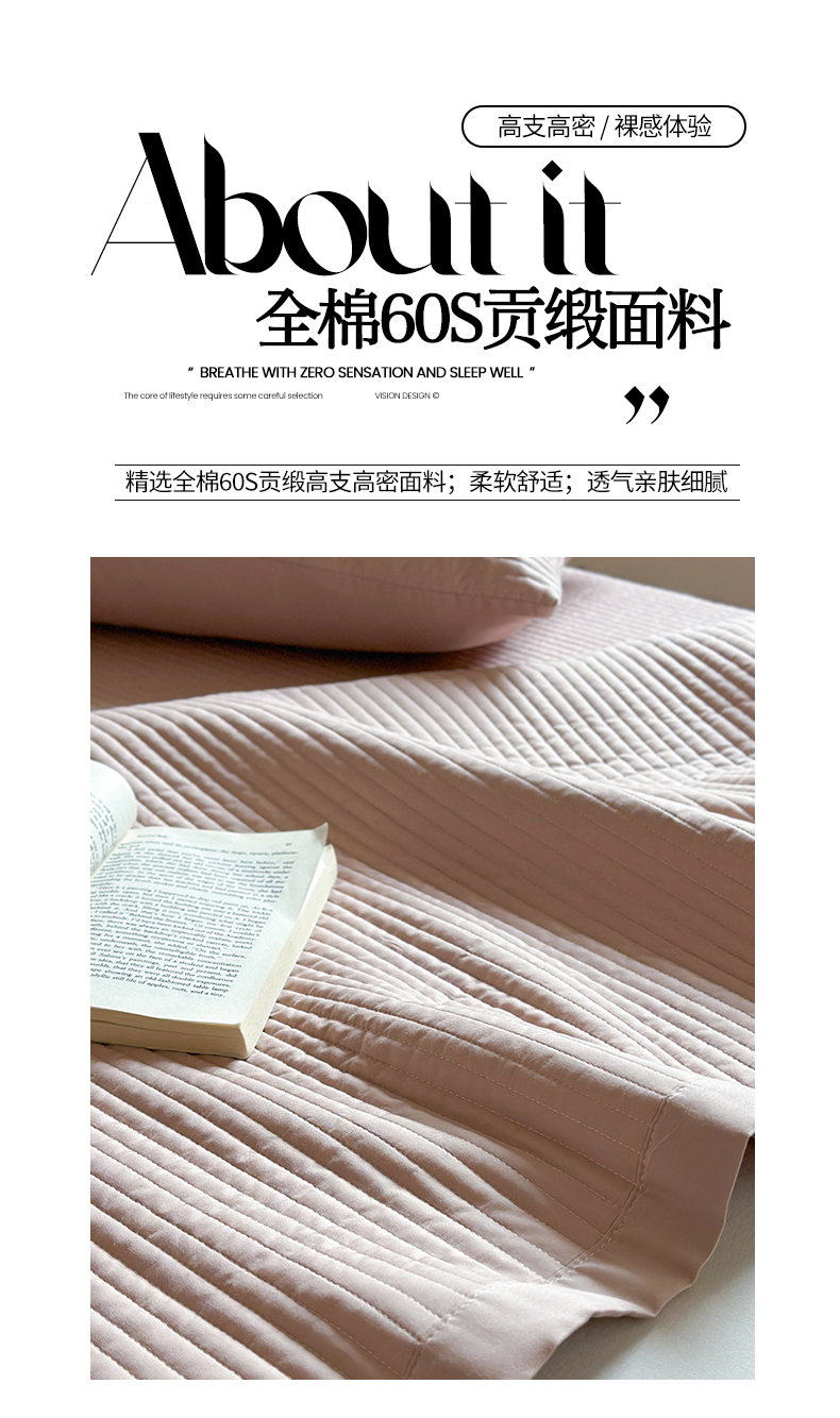 漫调家纺 2025新款双面60S贡缎床盖夏被 柔雾粉