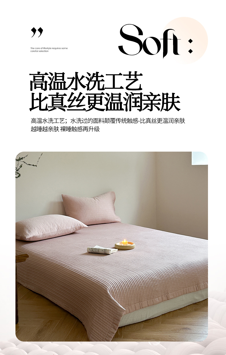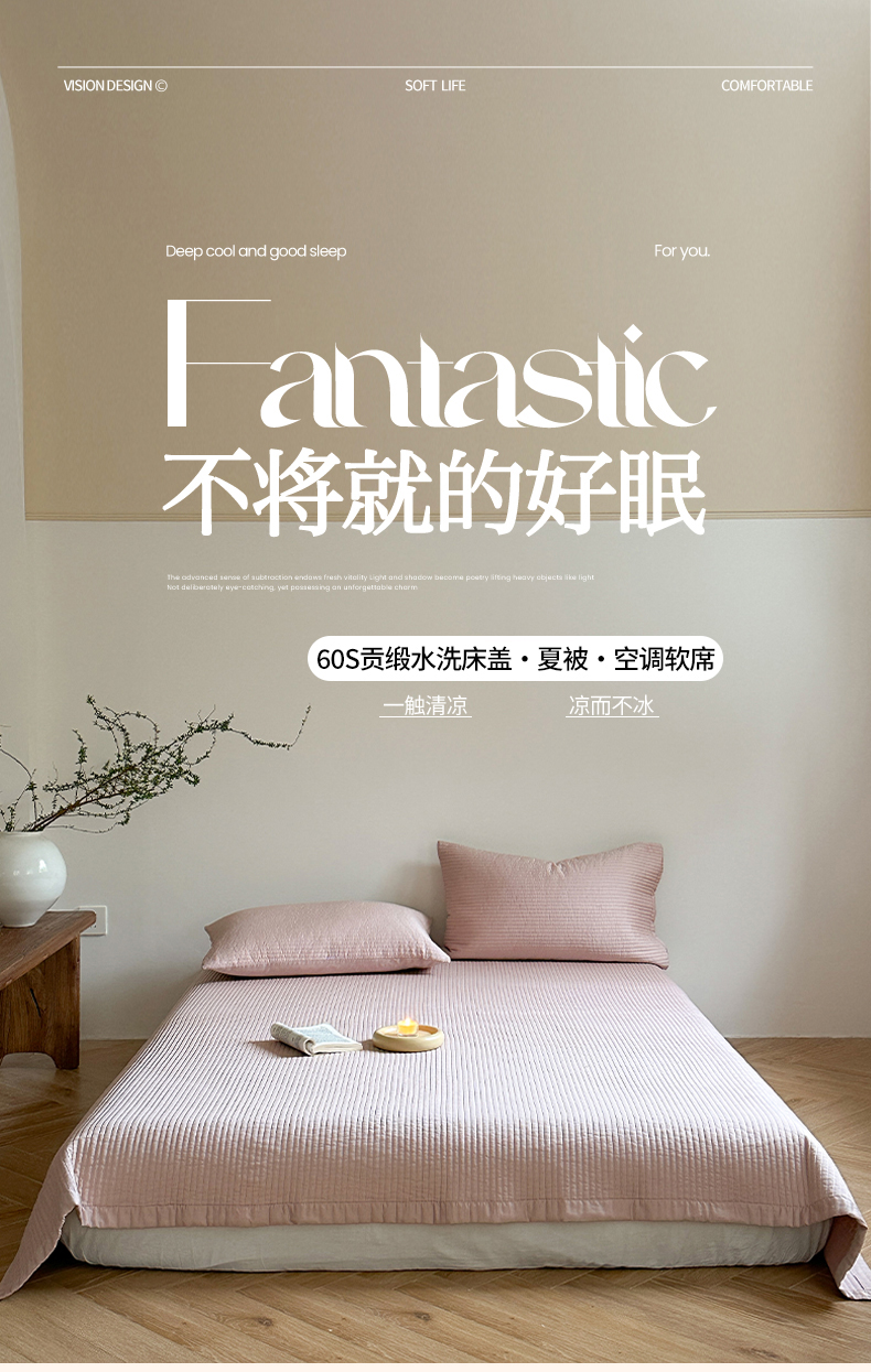 商品名称:漫调家纺 2025新款双面60S贡缎床盖夏被 柔雾粉