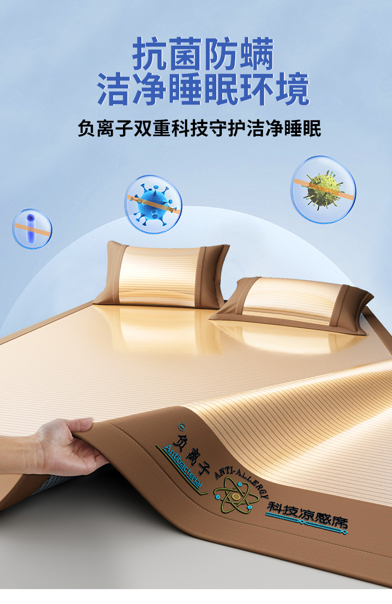 当前位置: 91家纺网 > 商品网购 > 床品套件 > 三件套 > 悠米悠家 2025新款负离子+抗菌系列凉席床笠三件套 负离子咖色