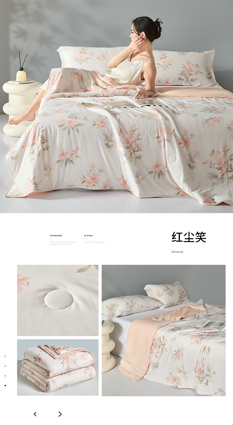 2025春夏新款100%双面锦纶美式印花夏被凉感空调被 红尘笑