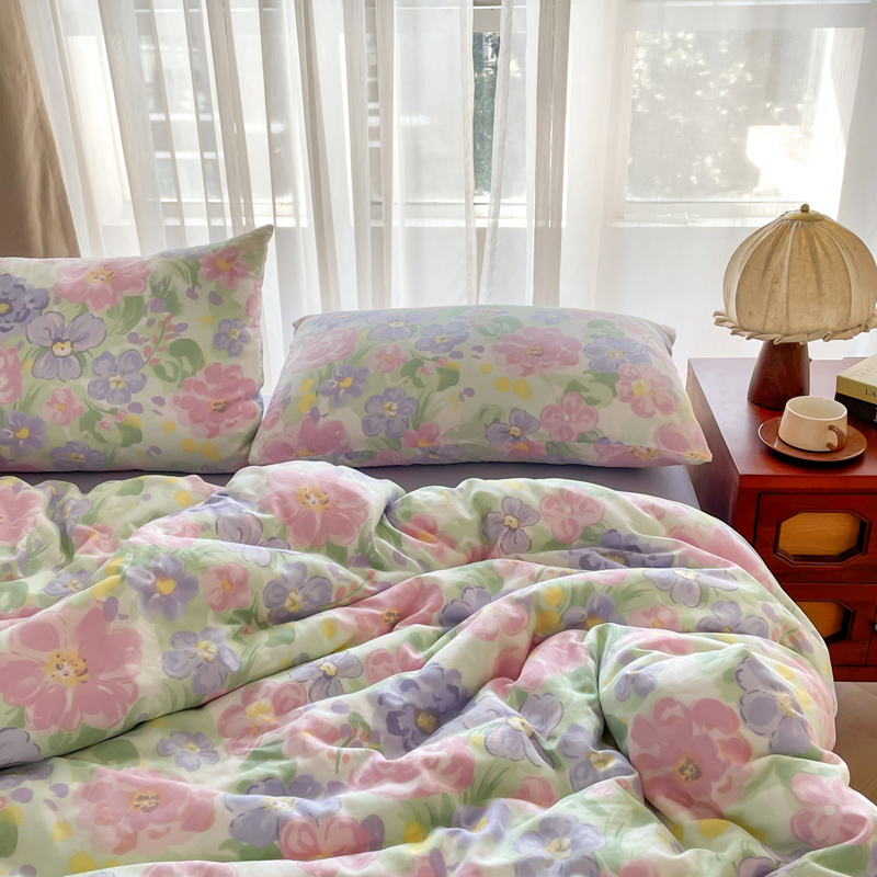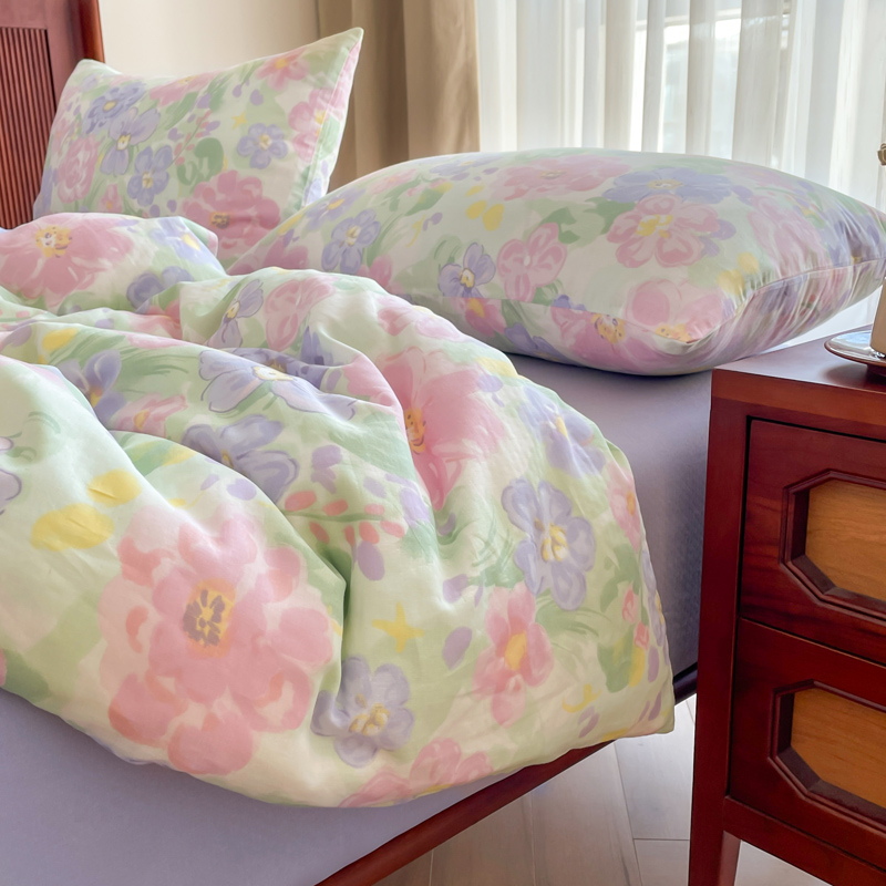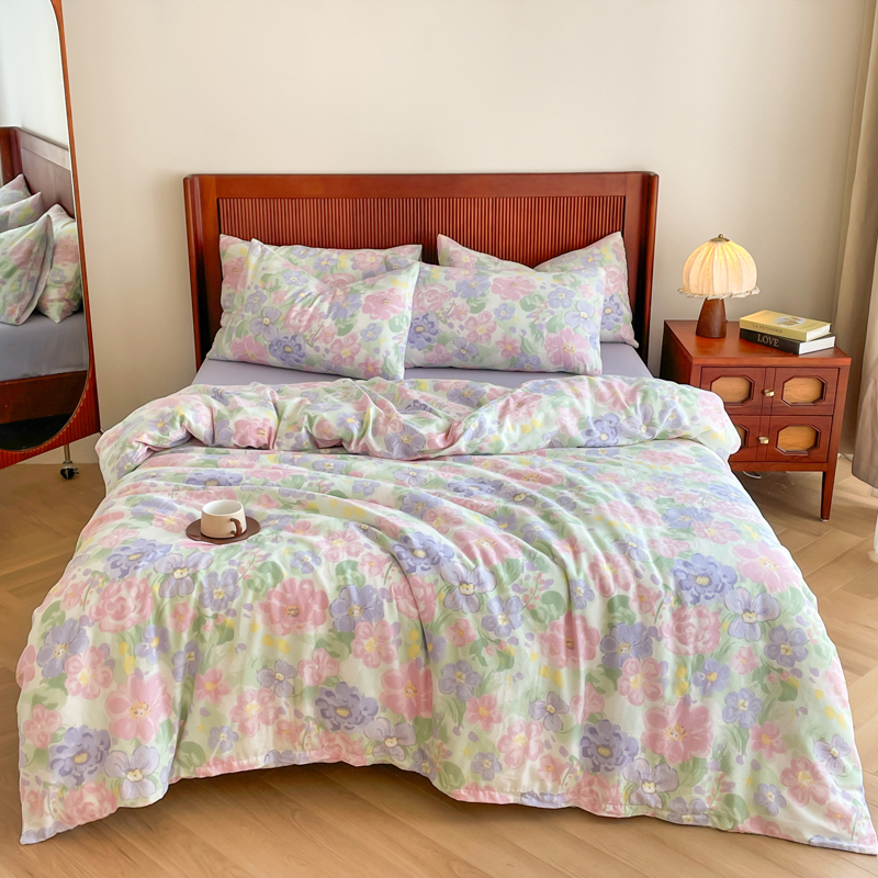 仟网汇 2025新款有氧全棉双层纱四件套 春天里