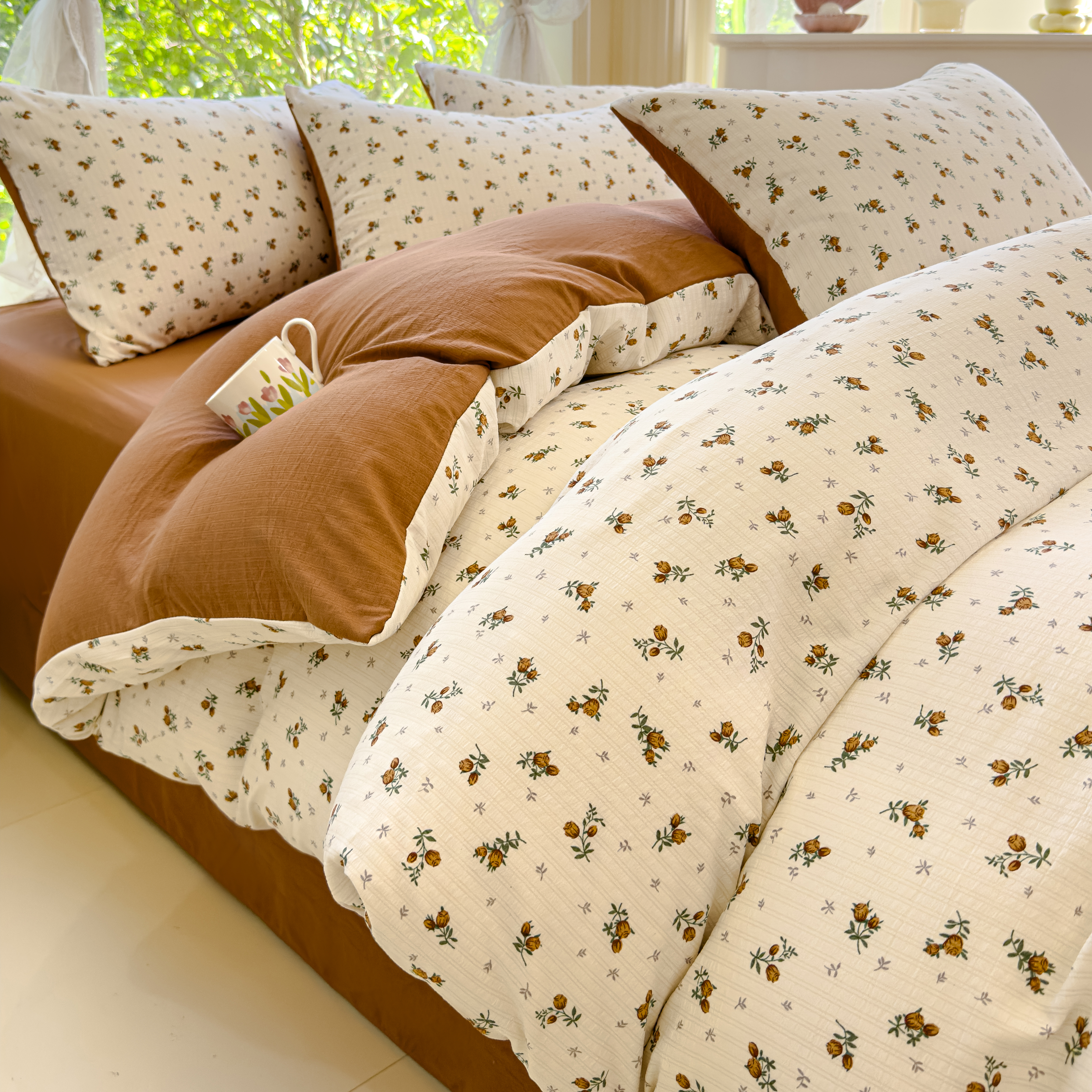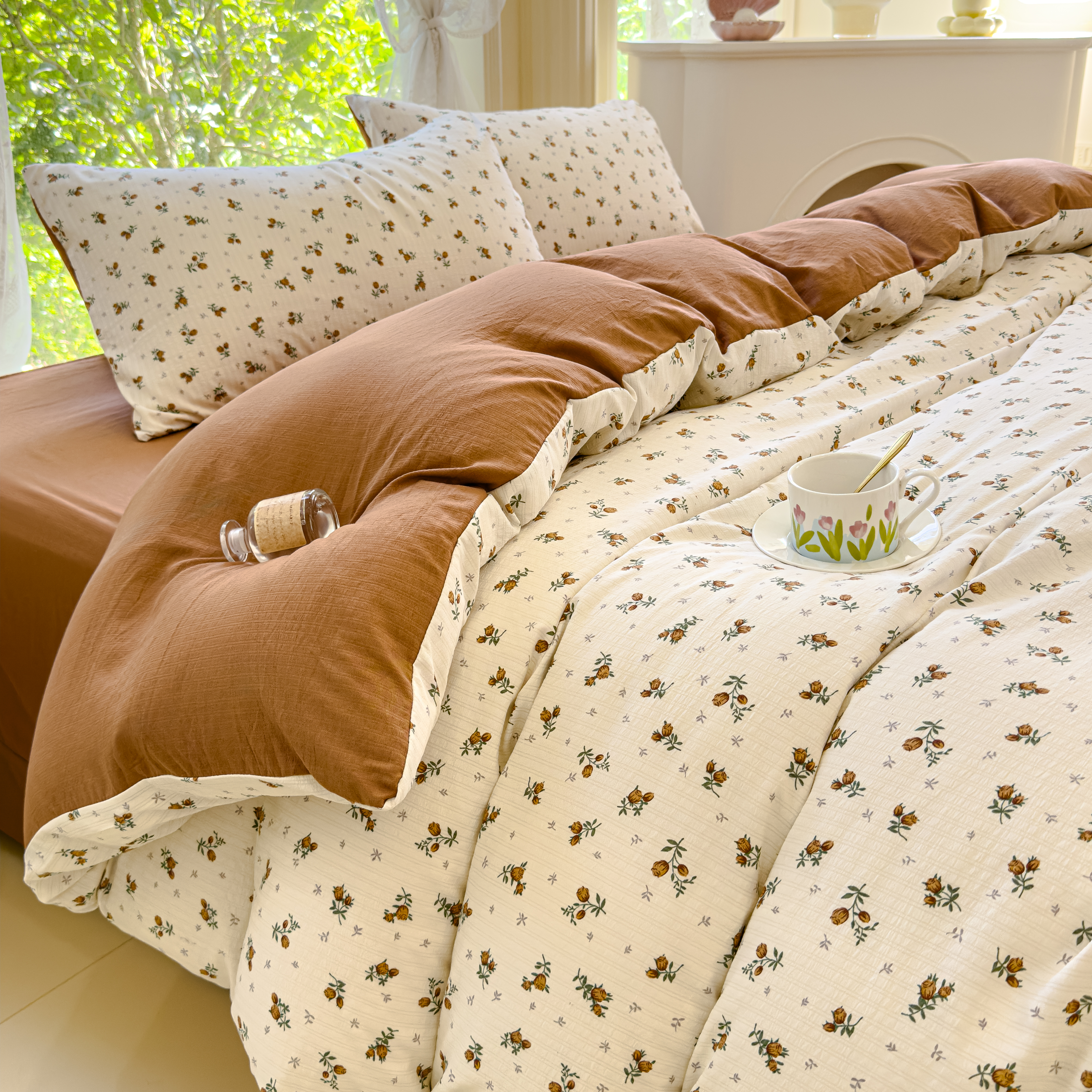 商品名称:仟网汇 2025新款亲肤舒适提花小竺棉彩竹棉彩竺棉系列四件套 彩竺棉-浅汐-咖色