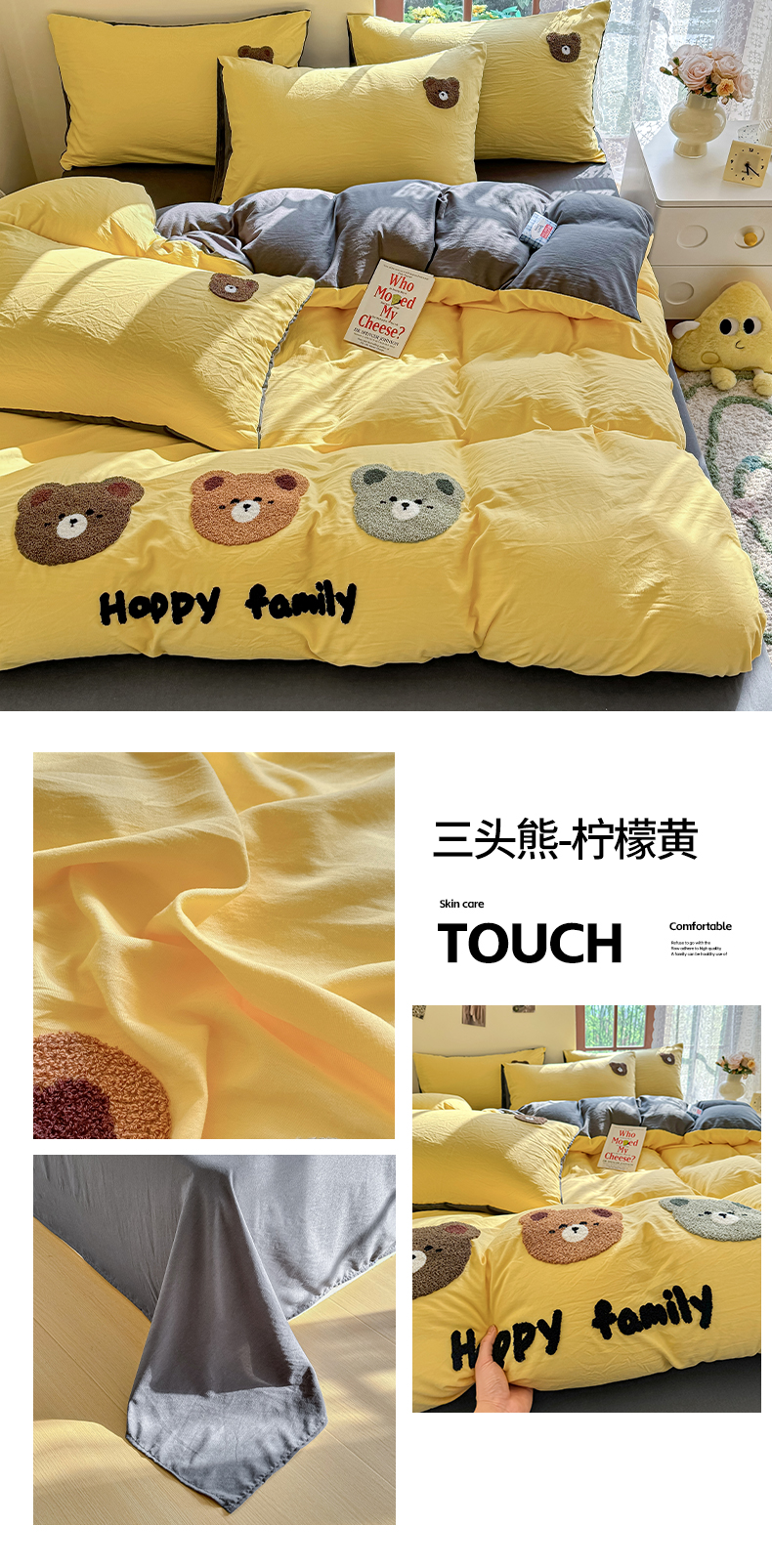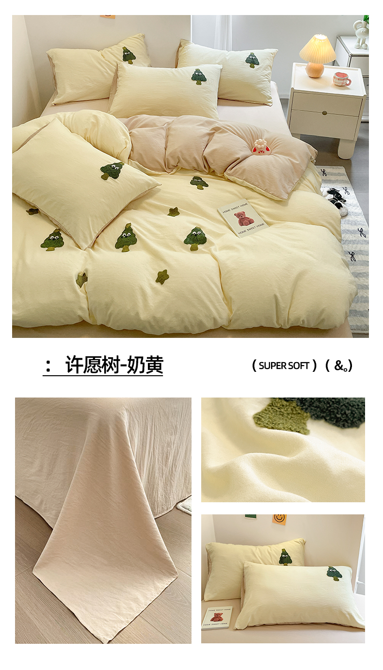 (总)优卡迪家纺馆 2024新款110克水洗棉甜心系列白花边四件套,甜心-奶油粉,甜心-奶油灰,甜心-奶油紫,甜心-奶油绿,甜心-奶油蓝,甜心-奶油黄