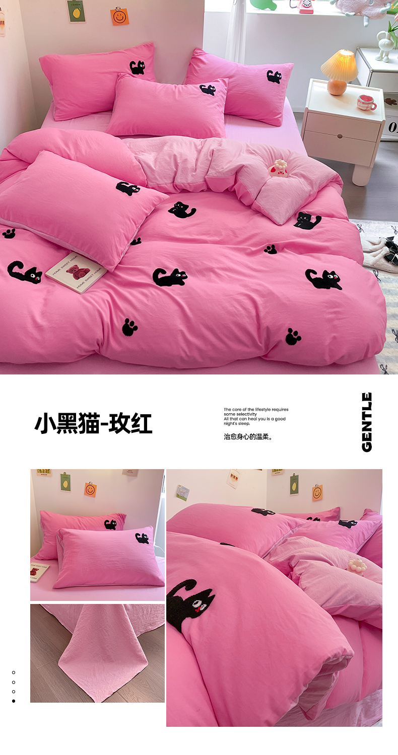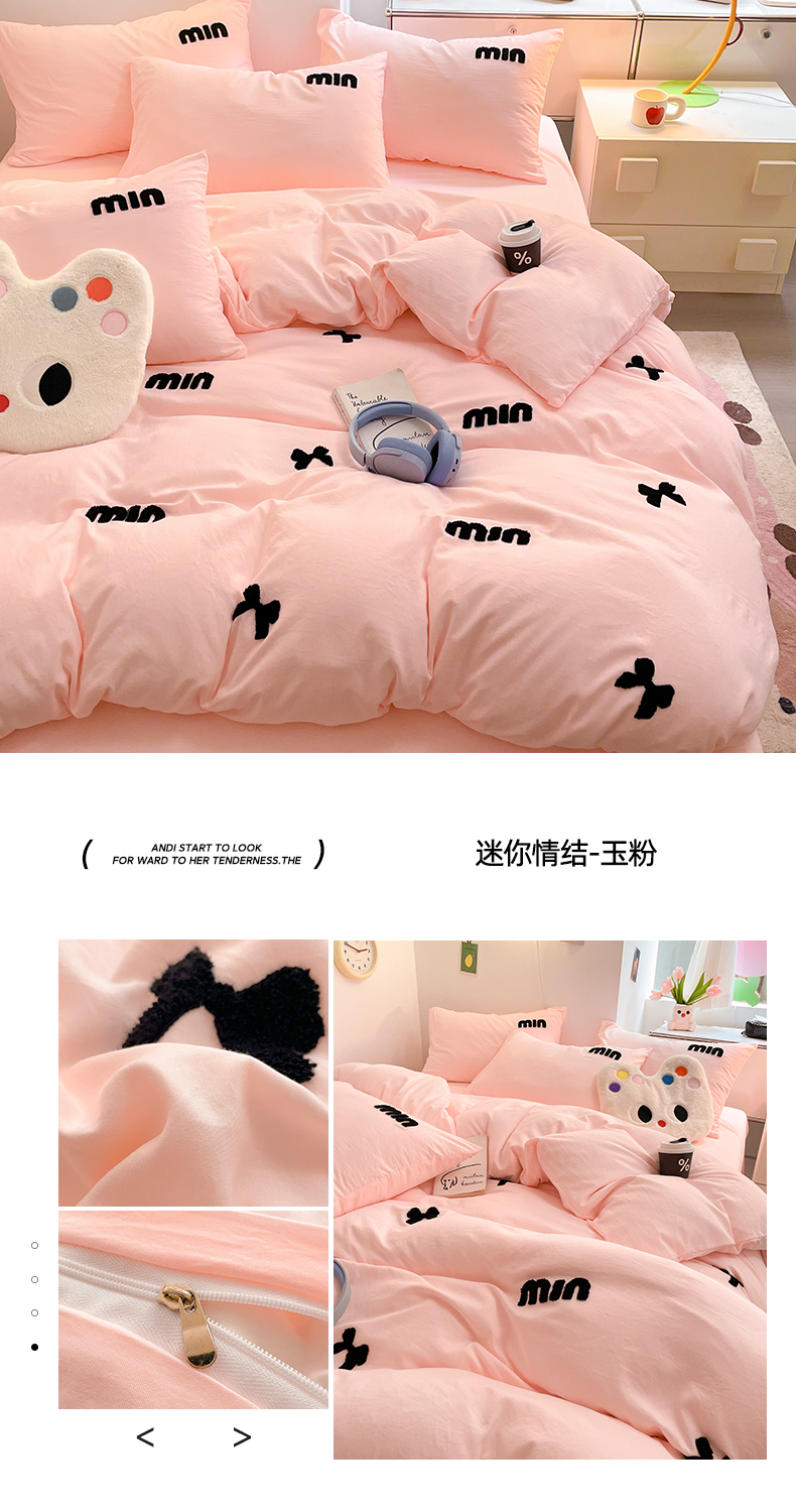 (总)2024新款水洗棉知梦系列黑花边四件套,知梦-望舒杏,知梦-摩卡蓝,知梦-星芒白,知梦-樱玫红,知梦-羽砂红,知梦-香颂绿
