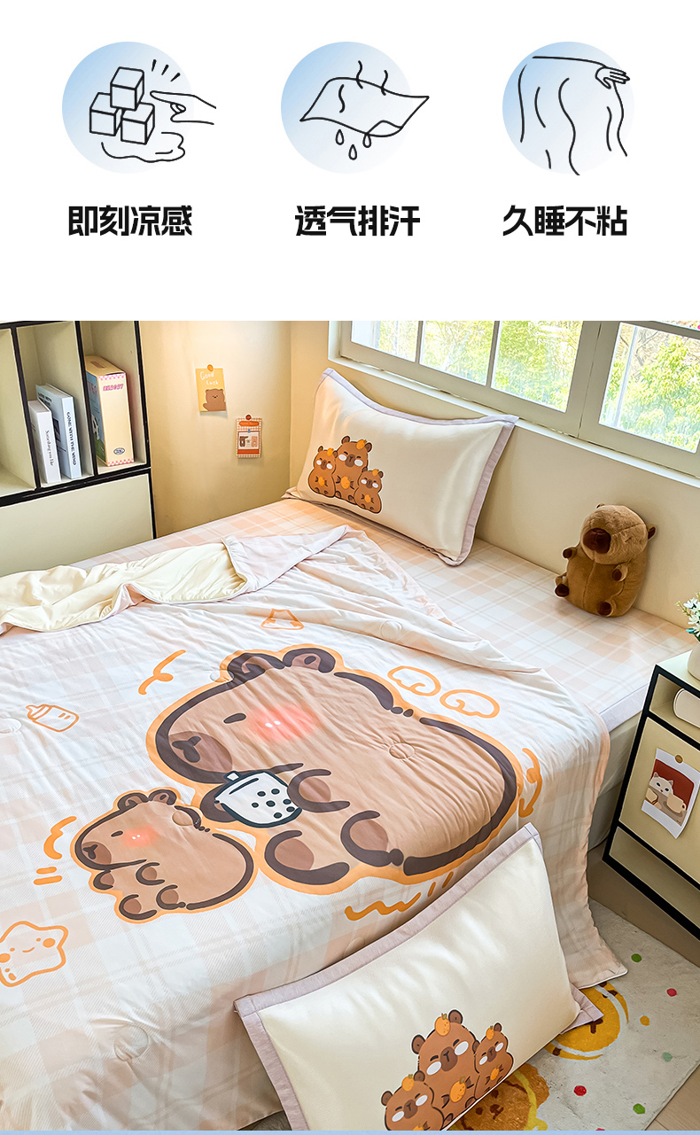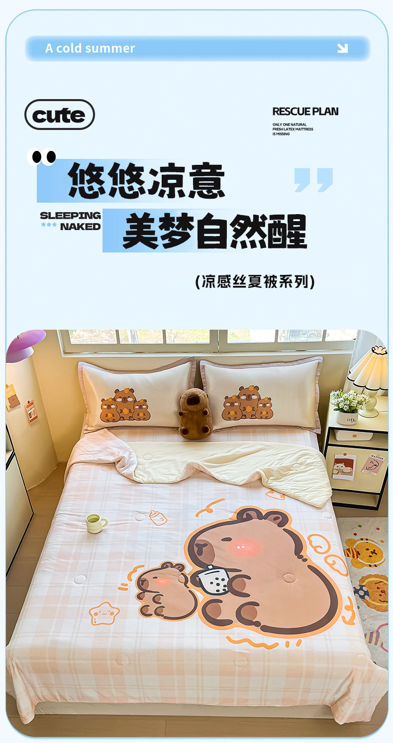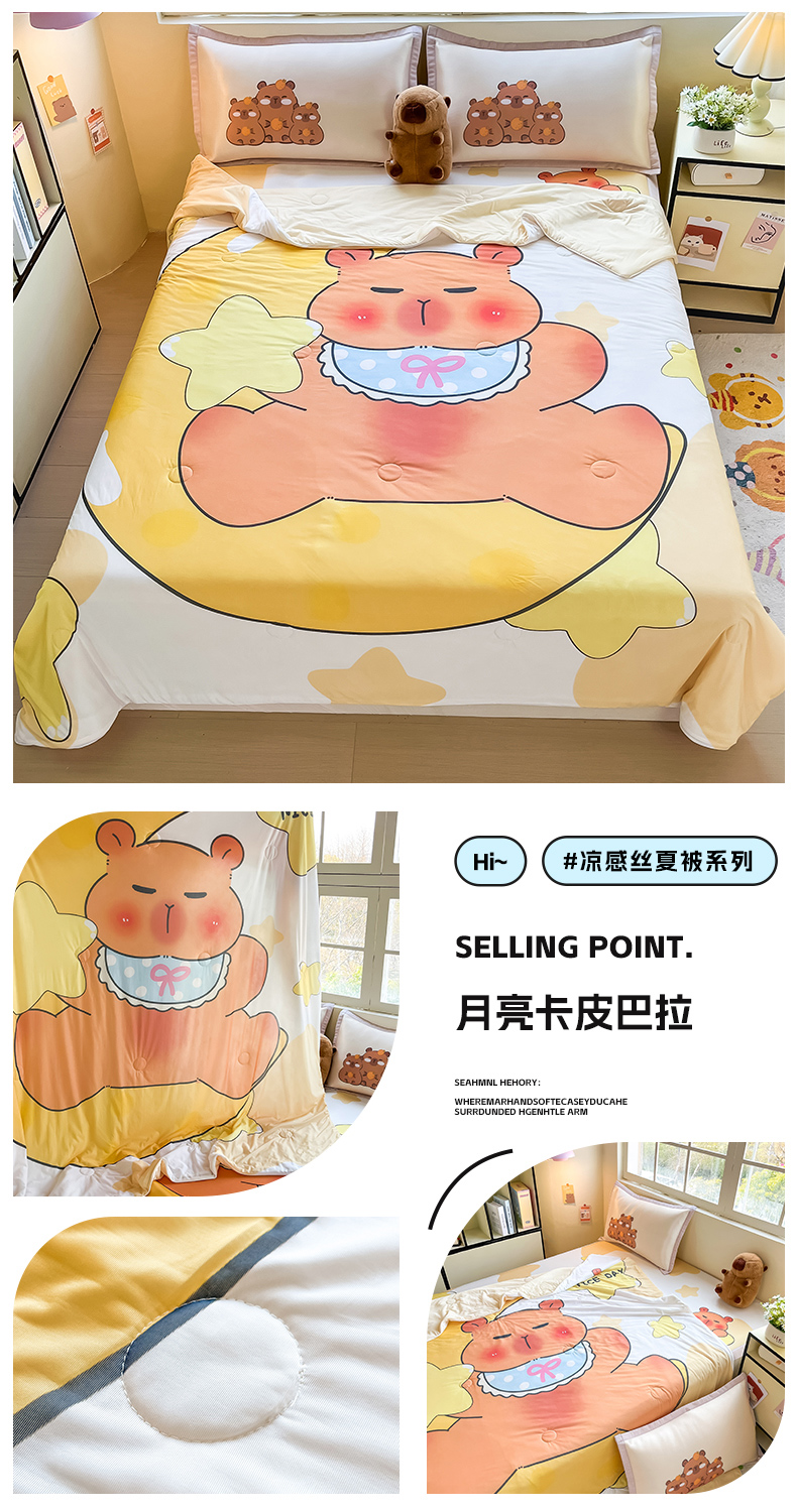商品名称:(总)博雅 2025新款A类大版数码印花冰丝凉席可组合凉感丝夏被-卡皮巴拉