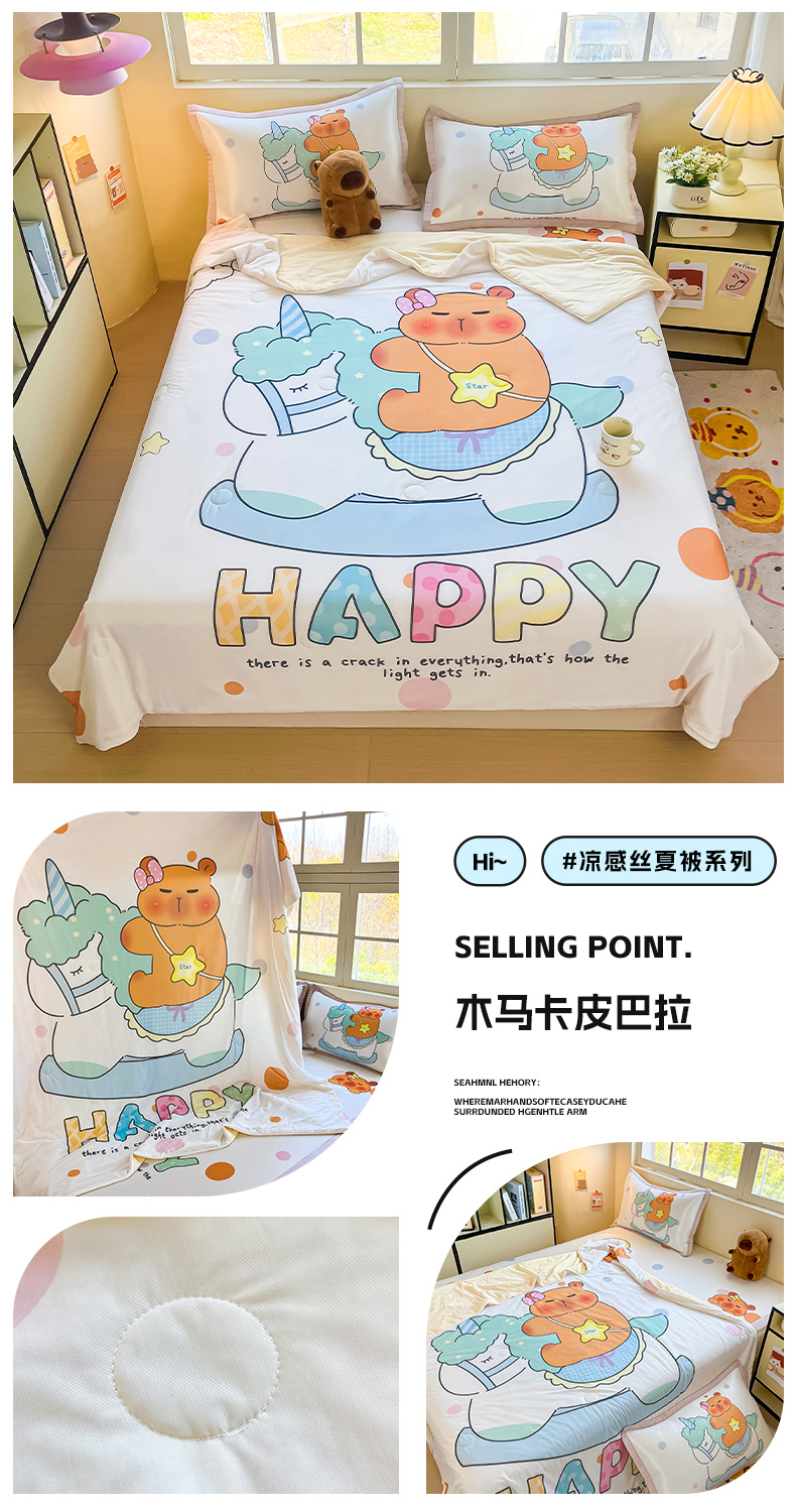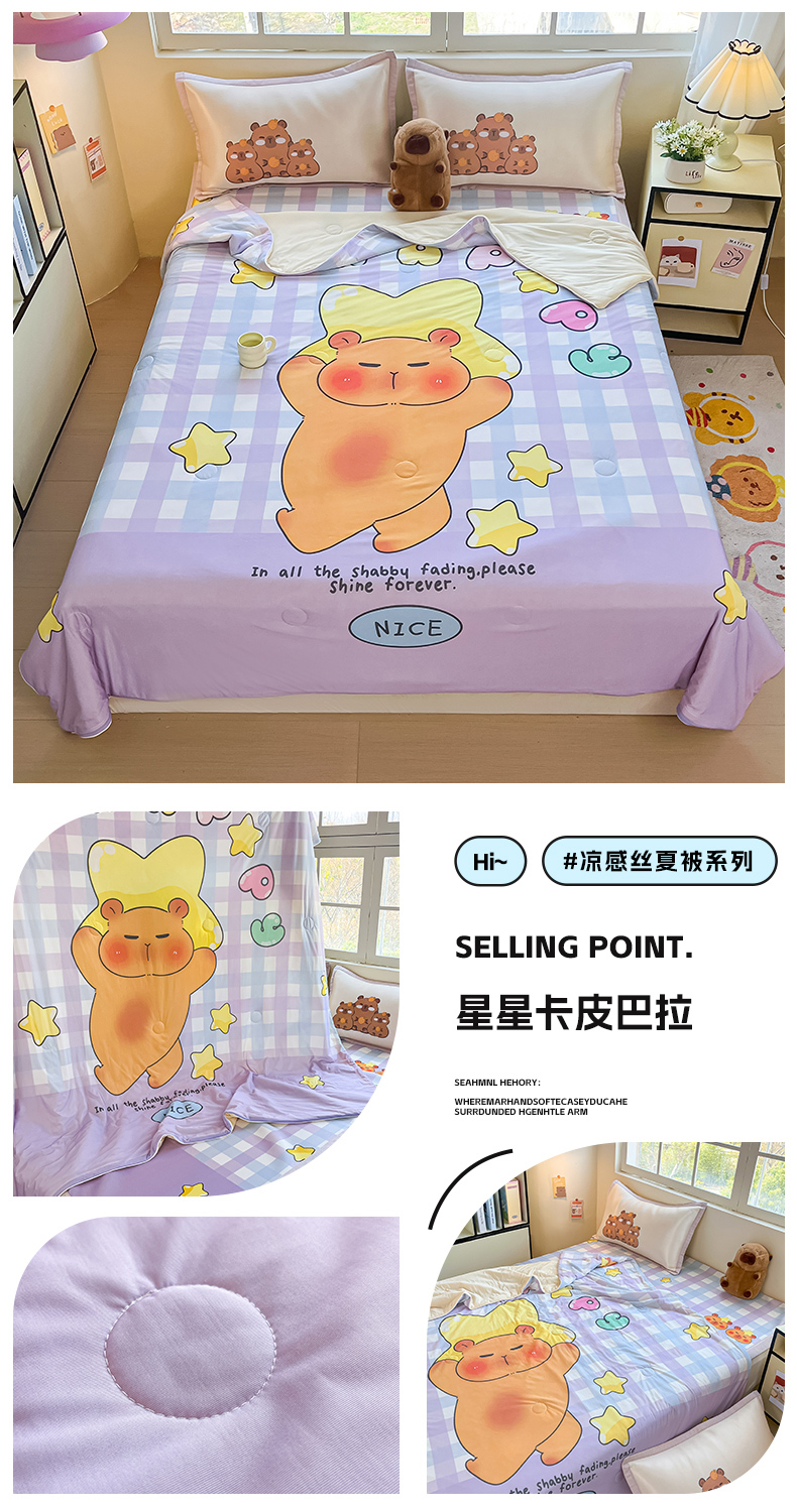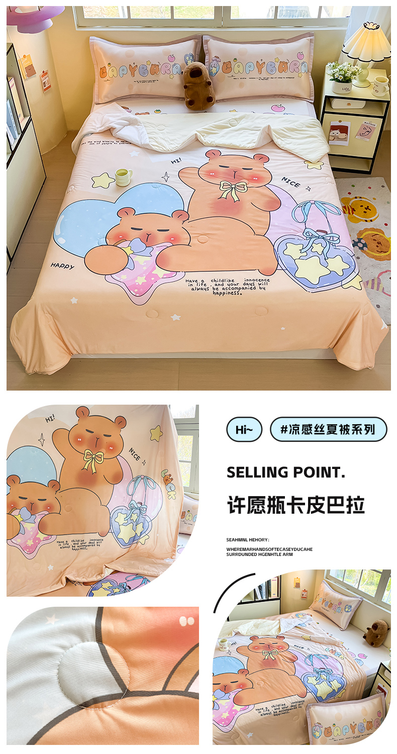 商品名称:(总)博雅 2025新款A类大版数码印花冰丝凉席可组合凉感丝夏被-卡皮巴拉