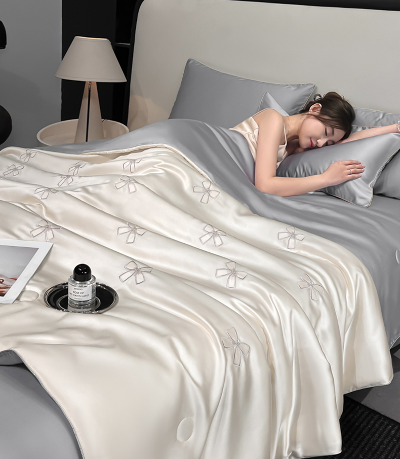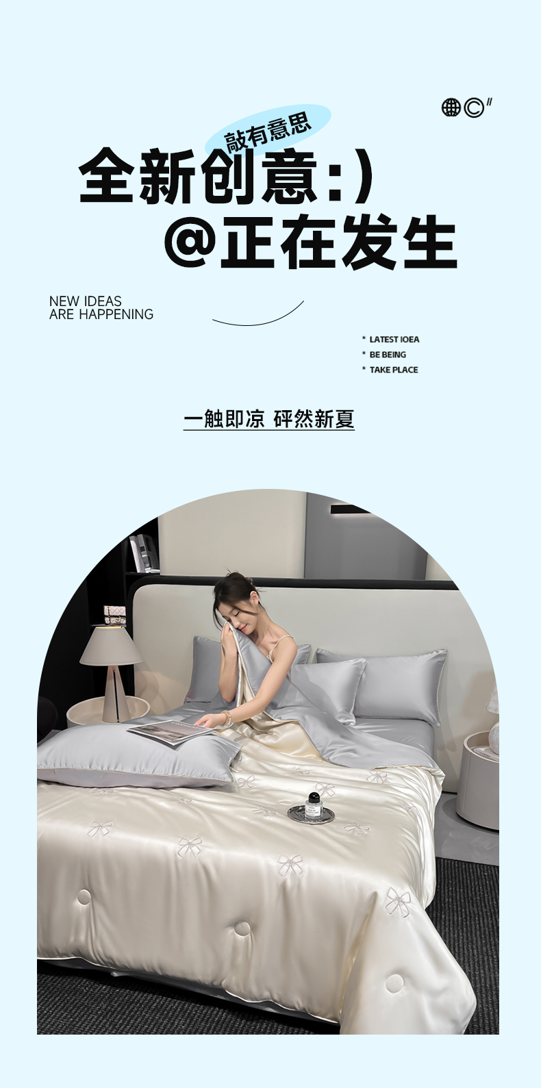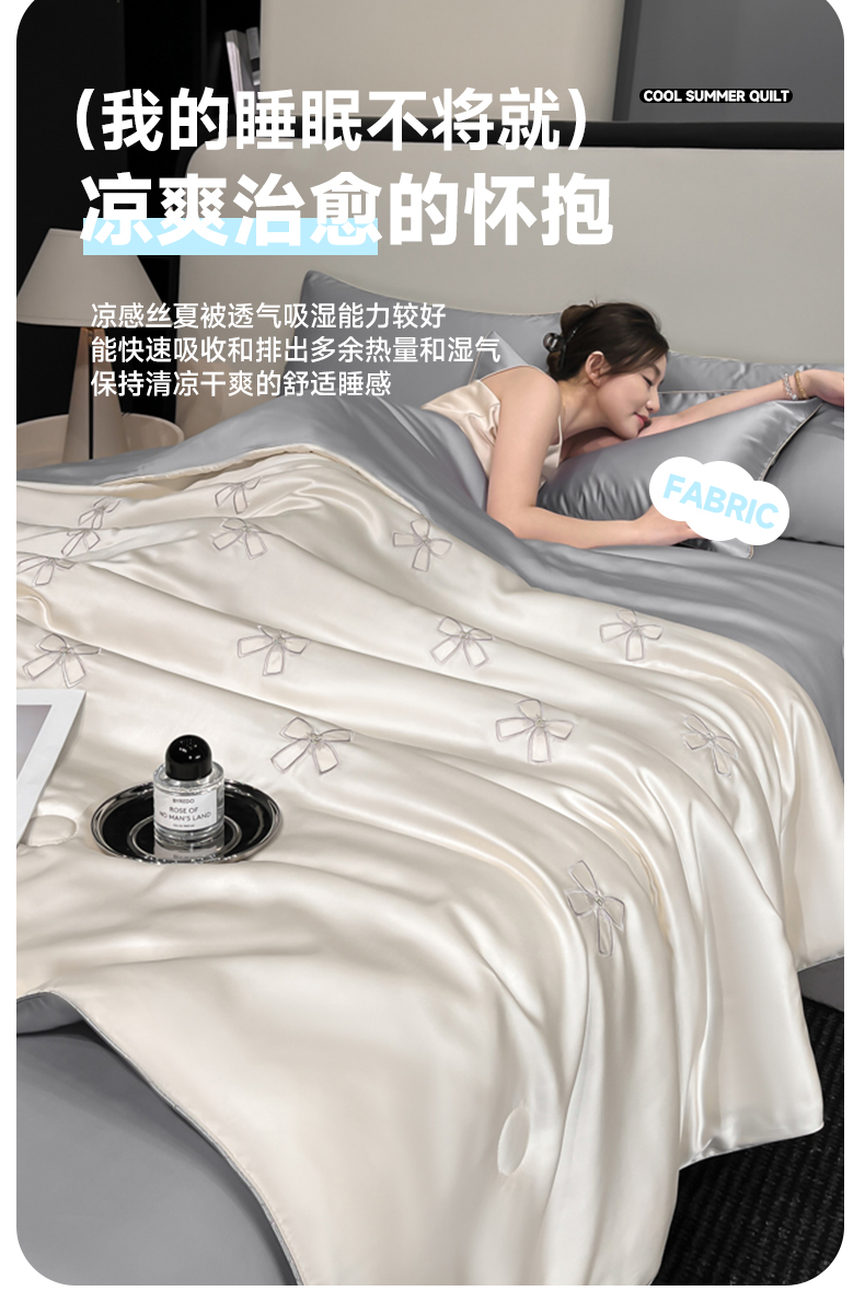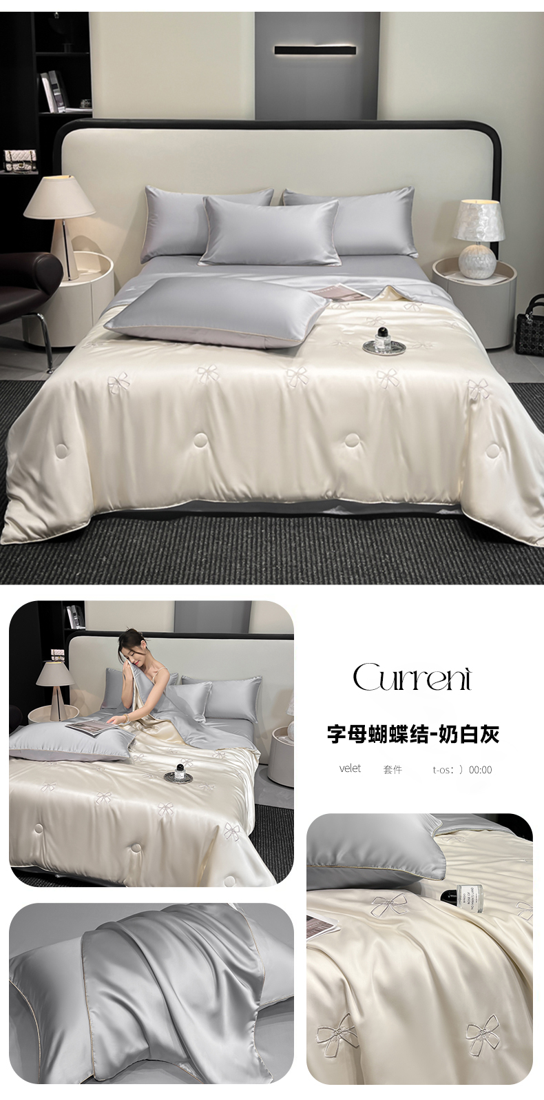 当前位置: 91家纺网 > 商品网购 > 床品套件 > 四件套 > 夏被四件套 > 鑫顺欣 2025新款水洗冰丝刺绣麻绳系列凉感夏被四件套夏凉被 字母蝴蝶结-奶白灰