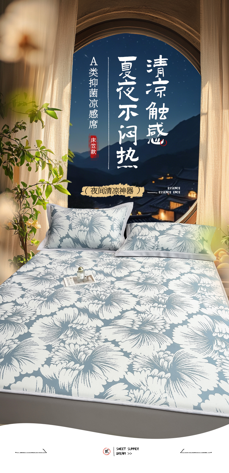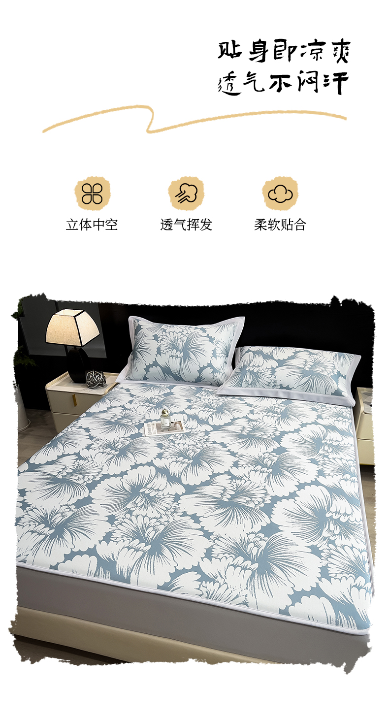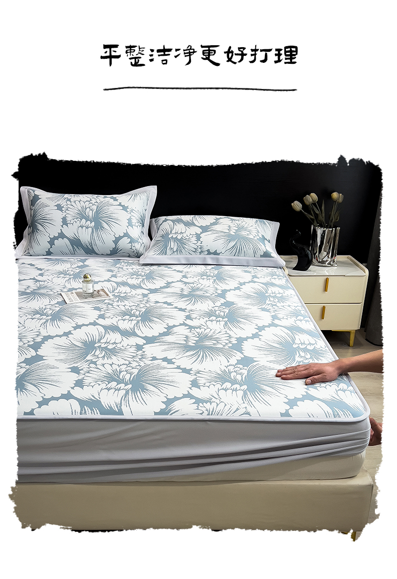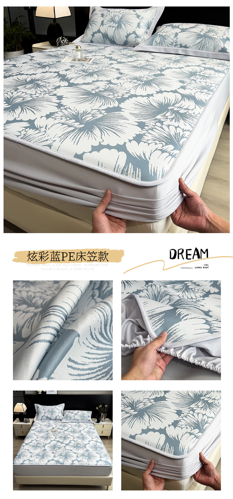 商品名称:倾慕家纺 2025新款简约PE50提花凉感席席子凉席-床笠款 炫彩蓝PE床笠款