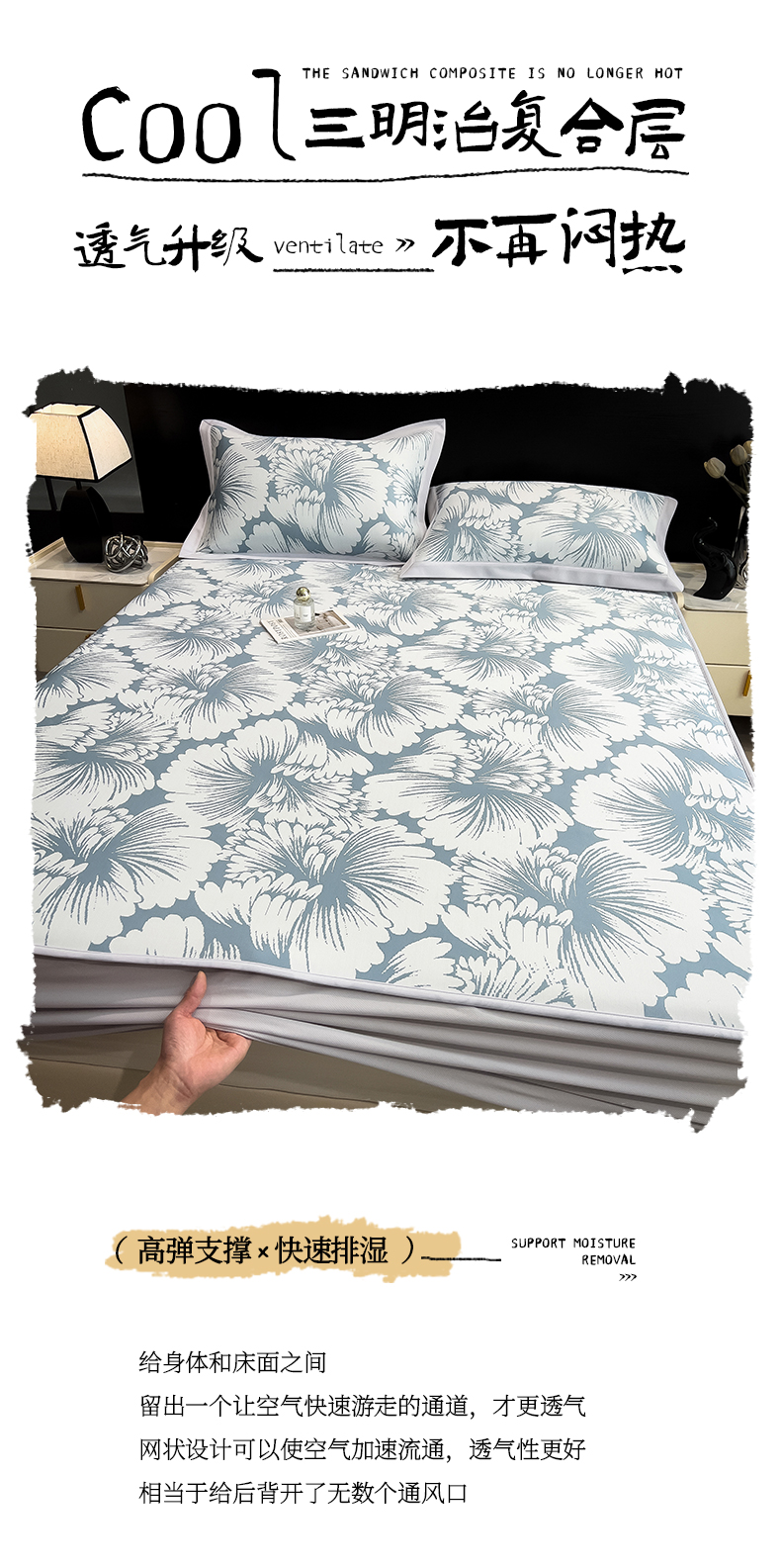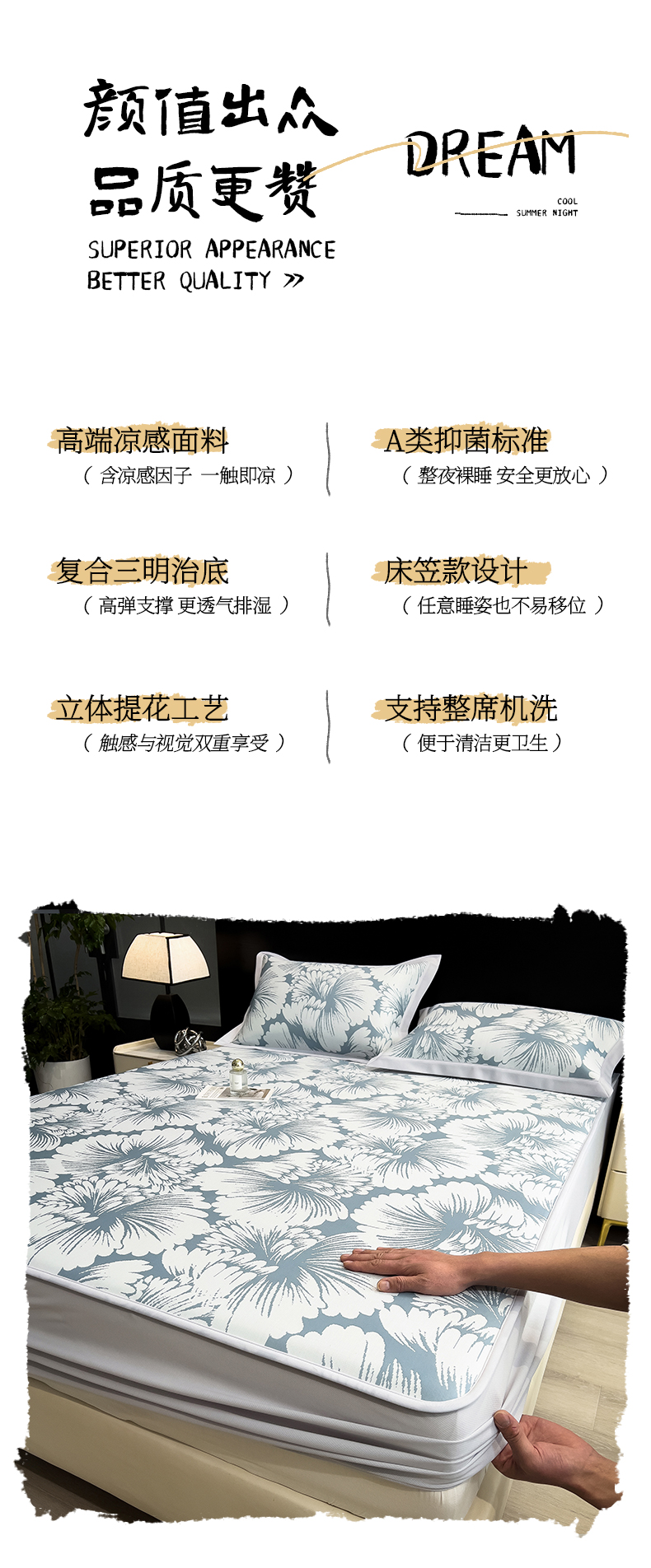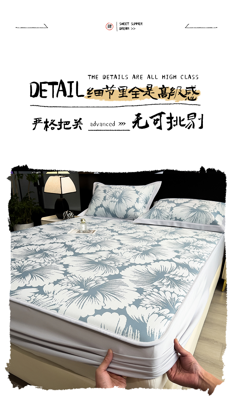 商品名称:倾慕家纺 2025新款简约PE50提花凉感席席子凉席-床笠款 炫彩蓝PE床笠款