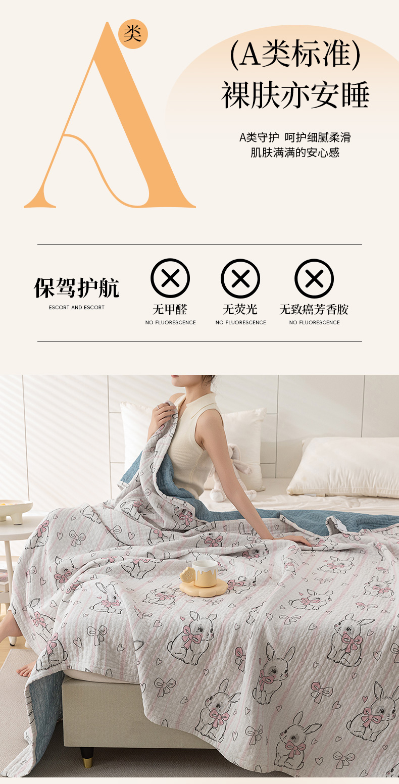 (总)乐家毛巾被 2025春夏新款全棉纯棉六层大版印花毛巾被,草地小兔,雏菊狗狗,春日女孩,海底女孩,胡萝卜兔,礼物狗狗,帽子狐狸,梅花鹿,气球老虎,水蜜桃女孩,踏青女孩