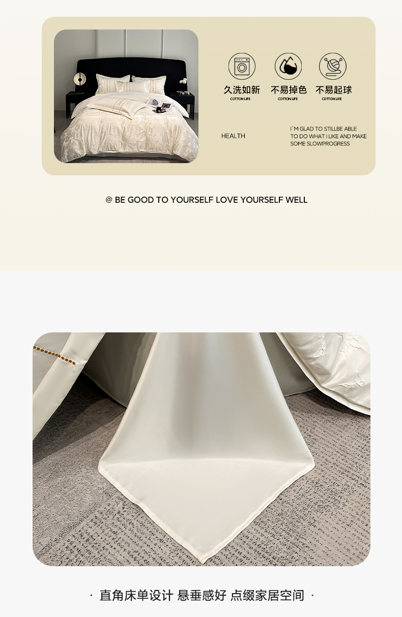 (总)米彩家纺 2025新款A类水洗真丝亮光浮雕花边四件套,粉香槟,粉玉,奶昔白,浅灰,天兰