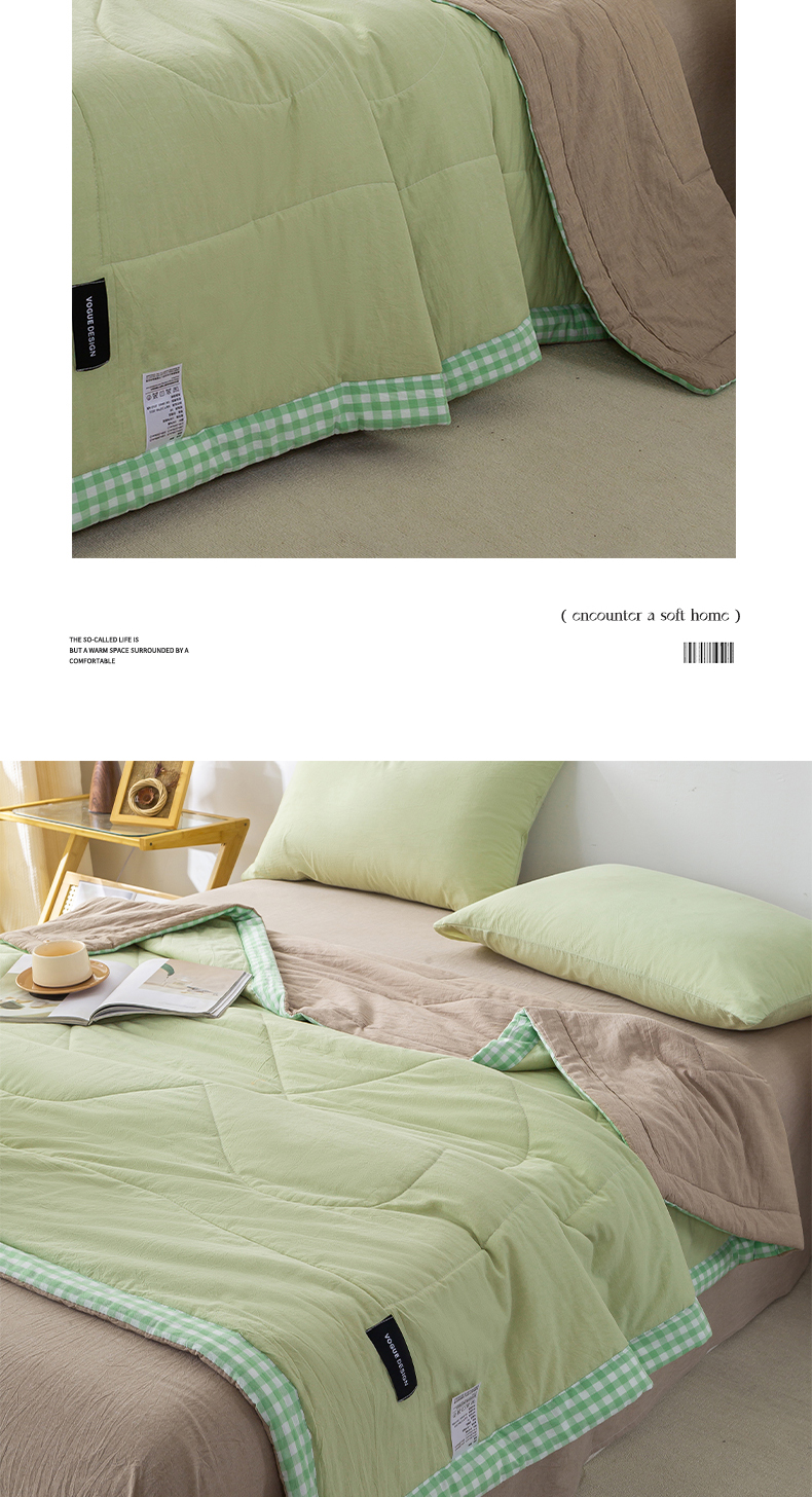 • 91家纺网 家纺一手货源 找家纺 恋人优选 2025新款A类全棉色织水洗棉棉花夏被背芯 青辰绿+杏仁棕