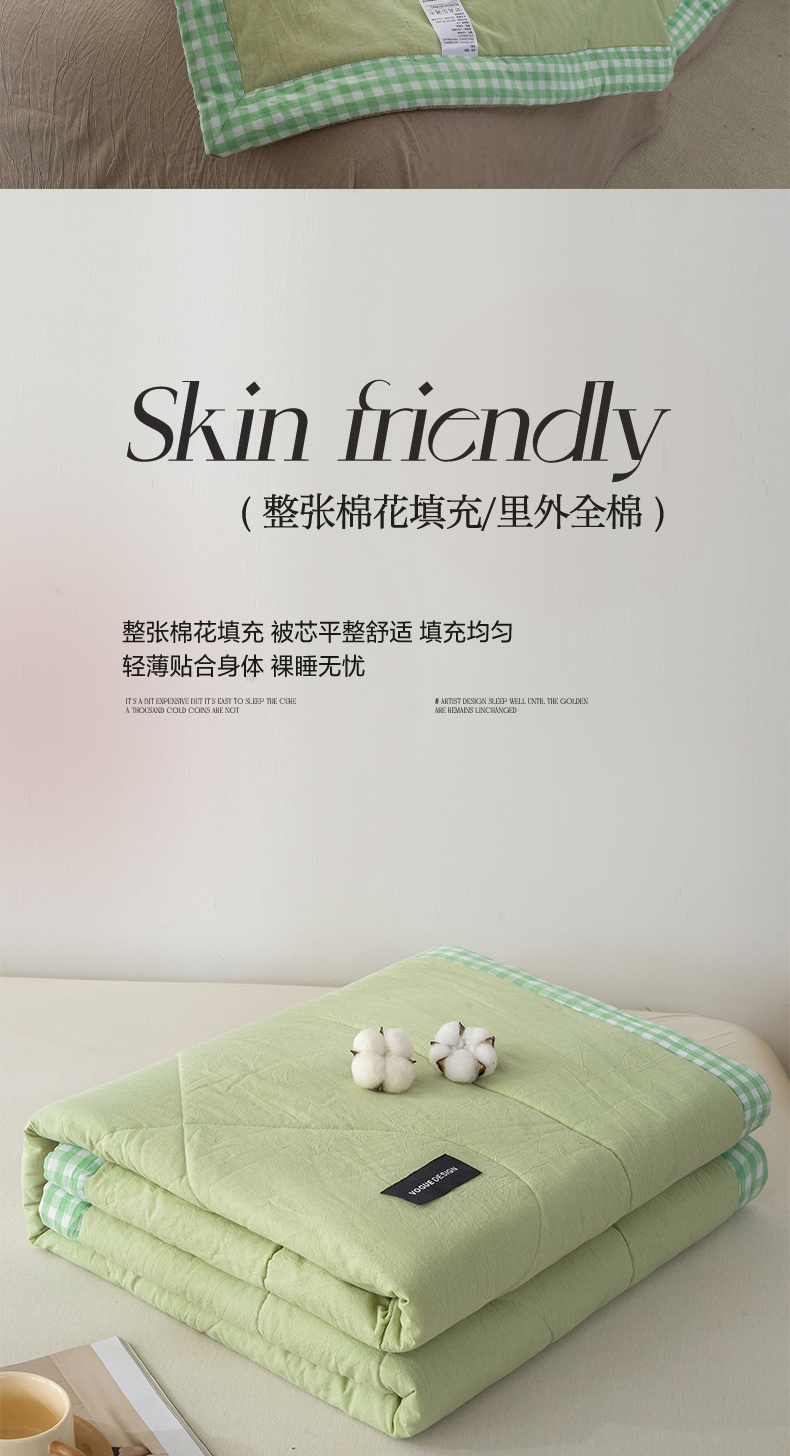 当前位置: 91家纺网 > 商品网购 > 被子 > 夏被 > 恋人优选 2025新款A类全棉色织水洗棉棉花夏被背芯 青辰绿+杏仁棕