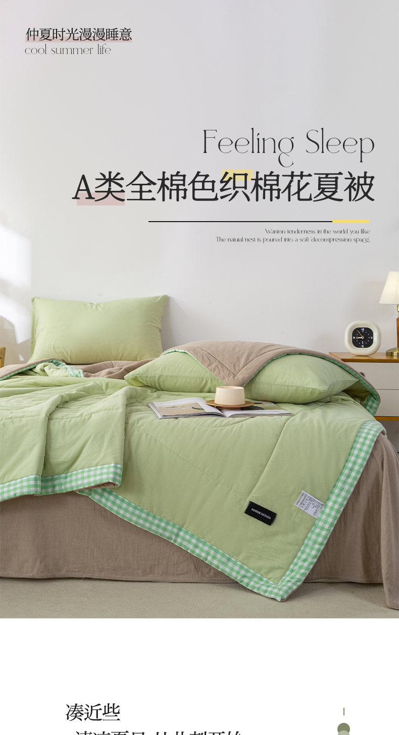 恋人优选 2025新款A类全棉色织水洗棉棉花夏被背芯 青辰绿+杏仁棕