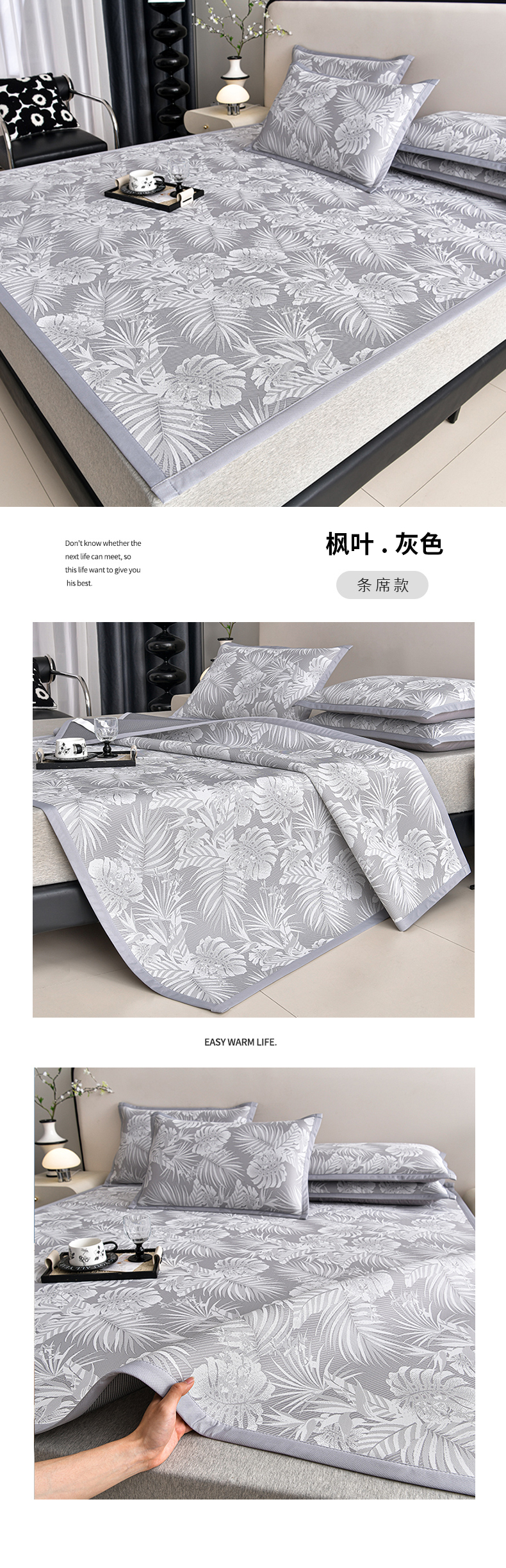 商品名称:慕婷家纺 2025新款凉感丝提花冰丝席 枫叶灰