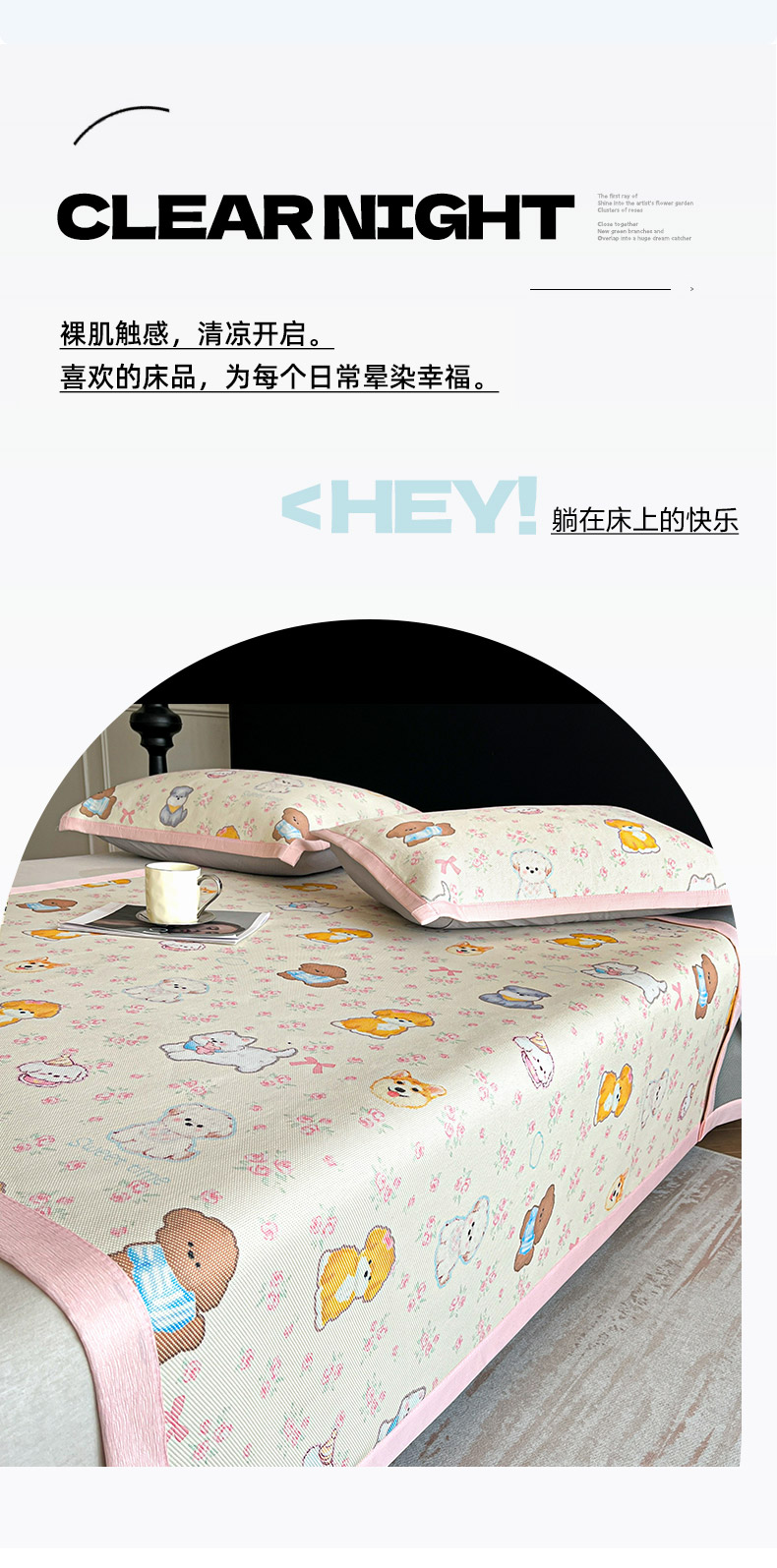 (总)久云居 2025新款凉感冰藤凉席三件套凉席席子,中古豹,大吉大利,动物乐园,放下焦绿,花样年华,快乐小狗,浪漫玫瑰,绿野仙踪,萌朵,梦幻城堡,牡丹韵,棋盘格,水墨江南,银灰蔓韵,粘豆包