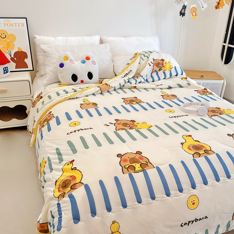 商品名称:兜米 2025夏季A类针织棉夏凉被小清新卡通双面针织棉空调被子被芯 卡皮八拉