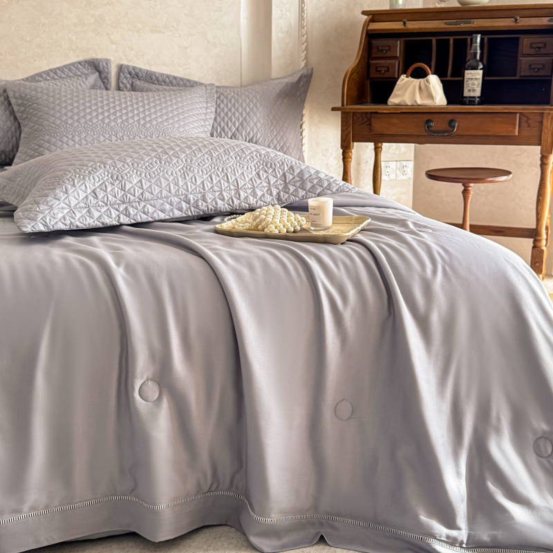 (总)若未家居2023新款轻奢意式50支全棉长绒棉四件套-水墨,贵族白,雾棕,烟蓝