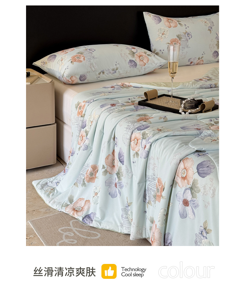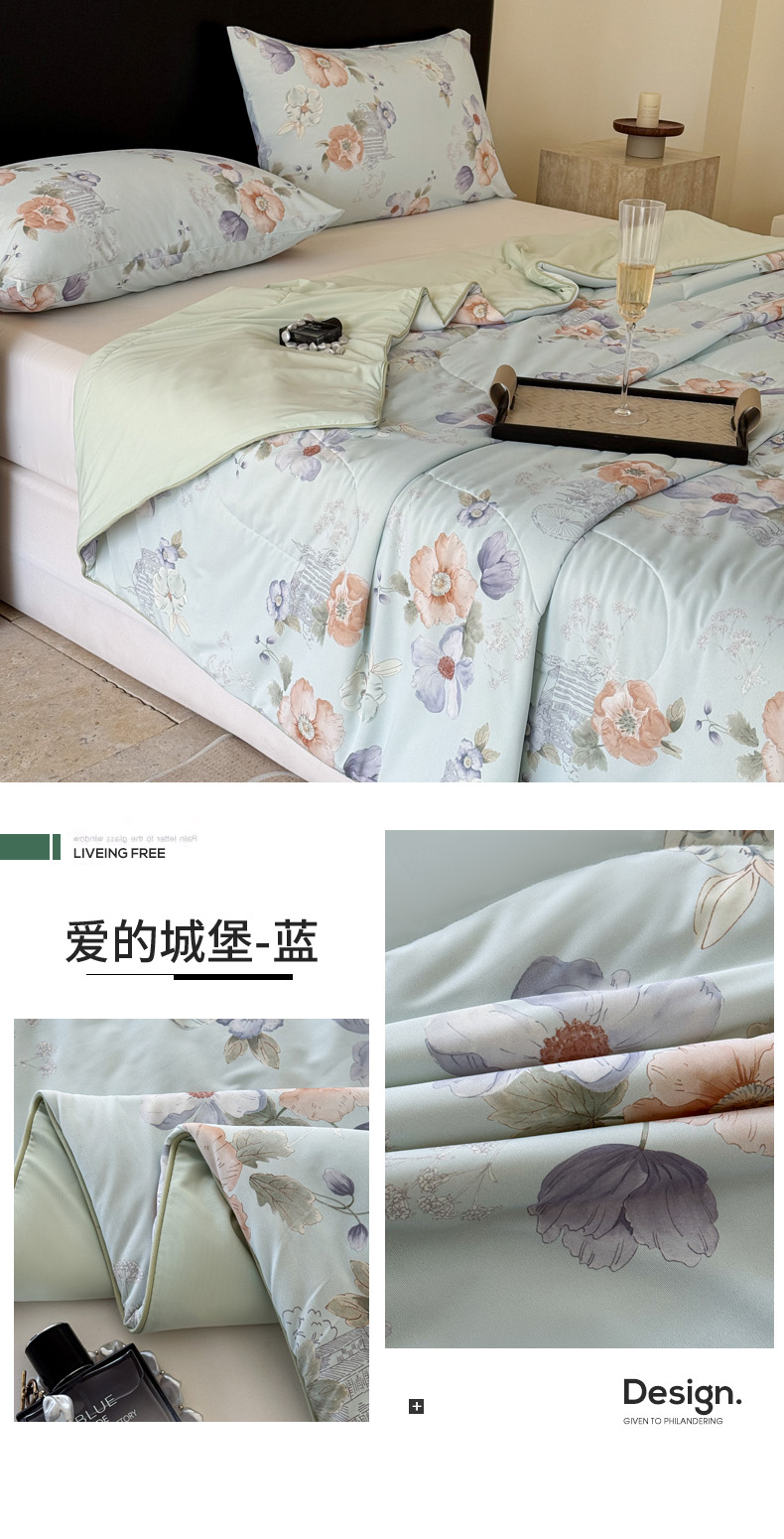 商品名称:丹本家纺 2025新款A类锦氨凉感被数码印花夏被夏凉被空调被 爱的城堡-蓝