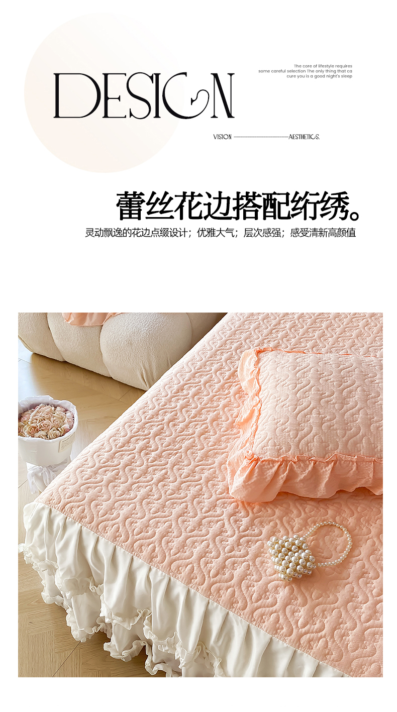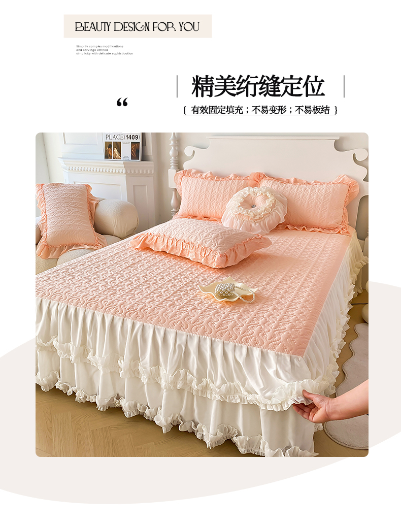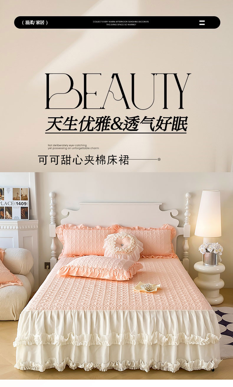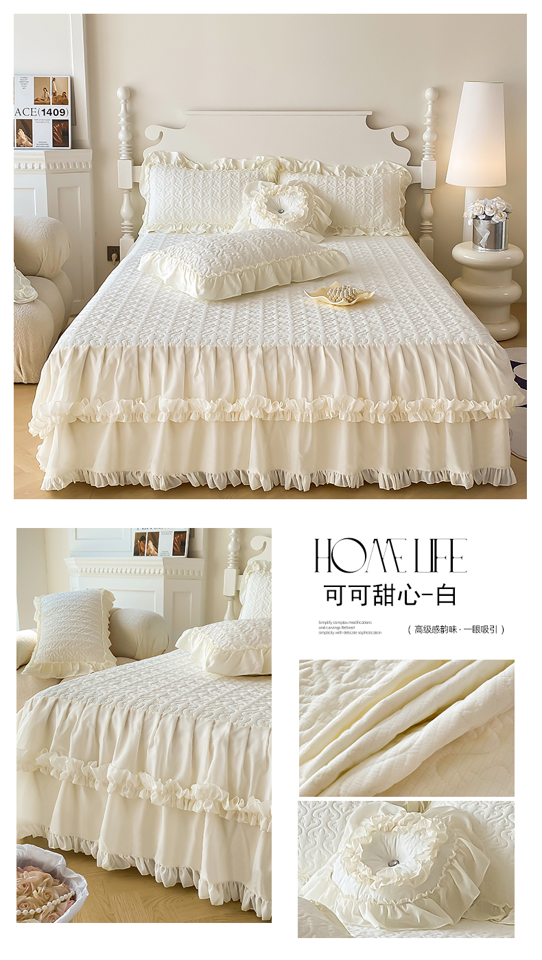 • 91家纺网 家纺一手货源 找家纺 花香四季家纺 2025新款法式夹棉绗缝床裙单件三件套蕾丝公主风-可可甜心 可可甜心-白