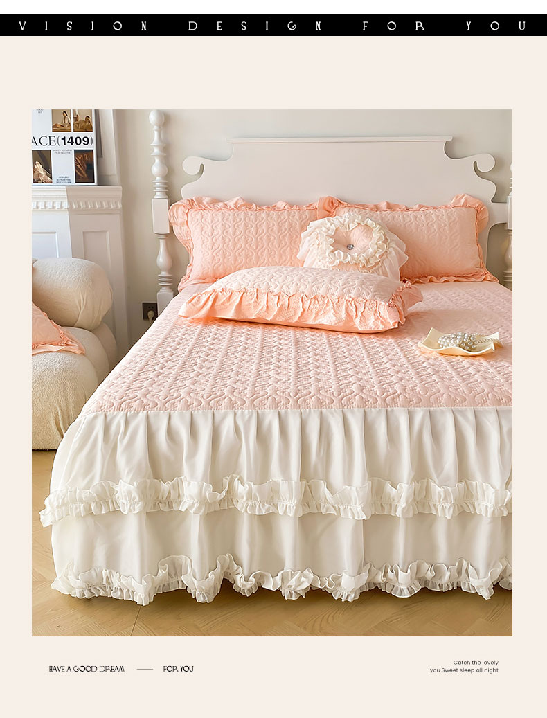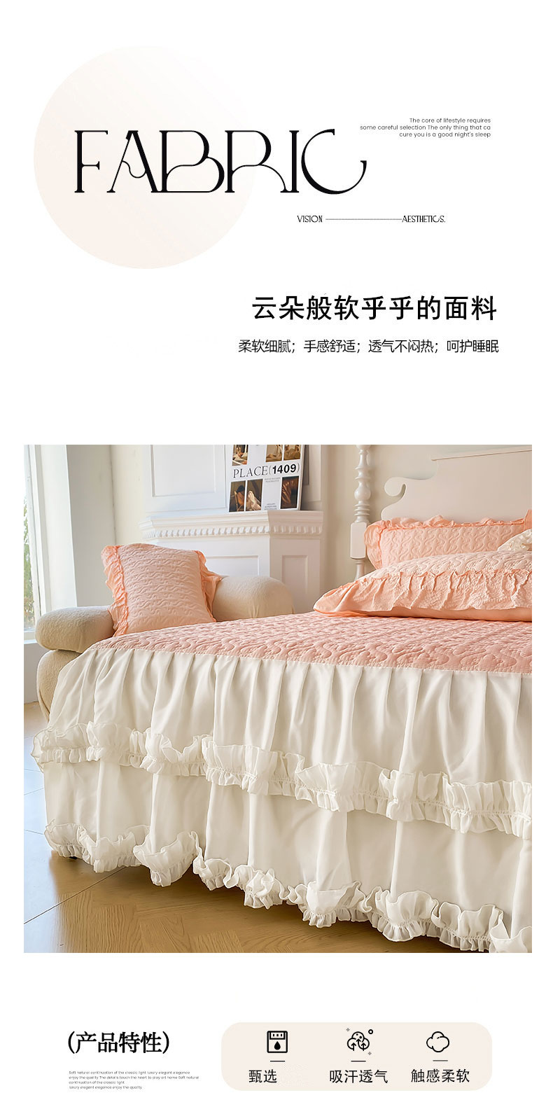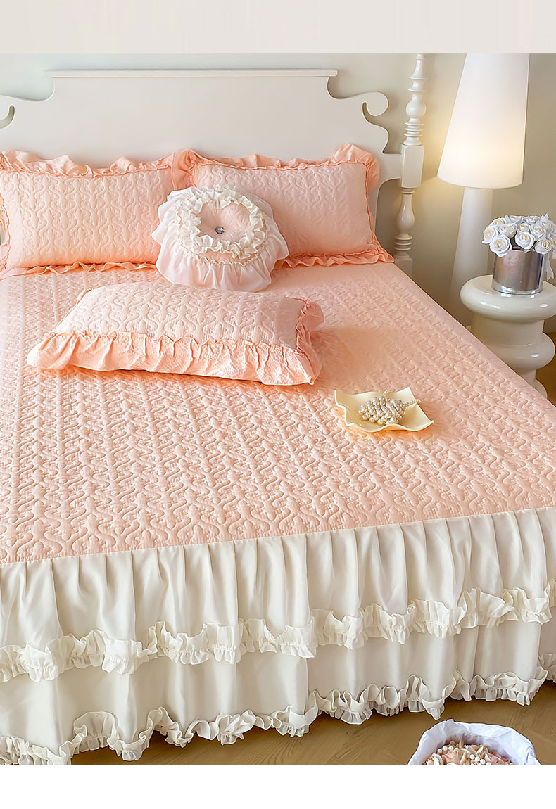 花香四季家纺 2025新款法式夹棉绗缝床裙单件三件套蕾丝公主风-可可甜心 可可甜心-白