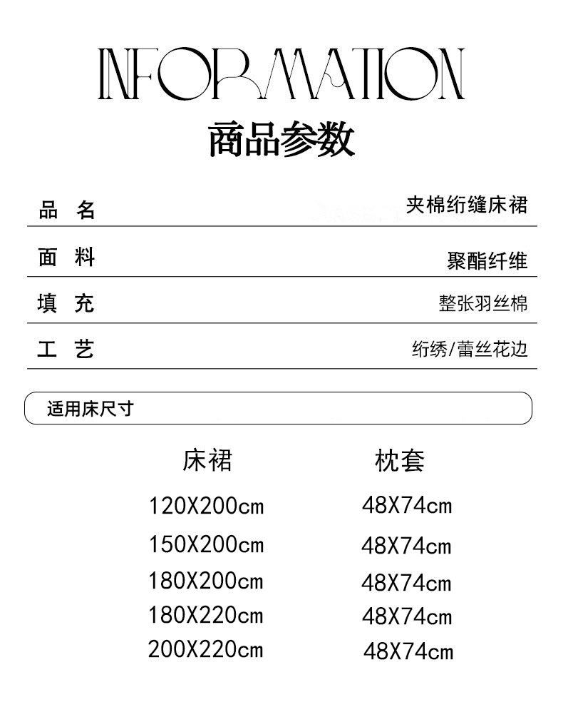 当前位置: 91家纺网 > 商品网购 > 床品套件 > 花香四季家纺 2025新款法式夹棉绗缝床裙单件三件套蕾丝公主风-可可甜心 可可甜心-白