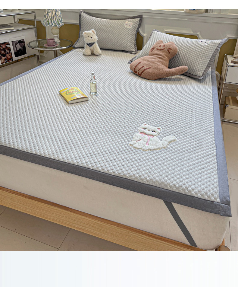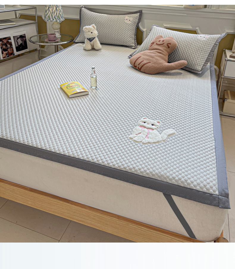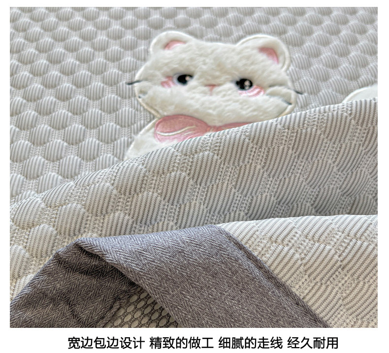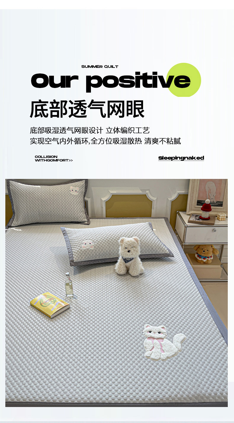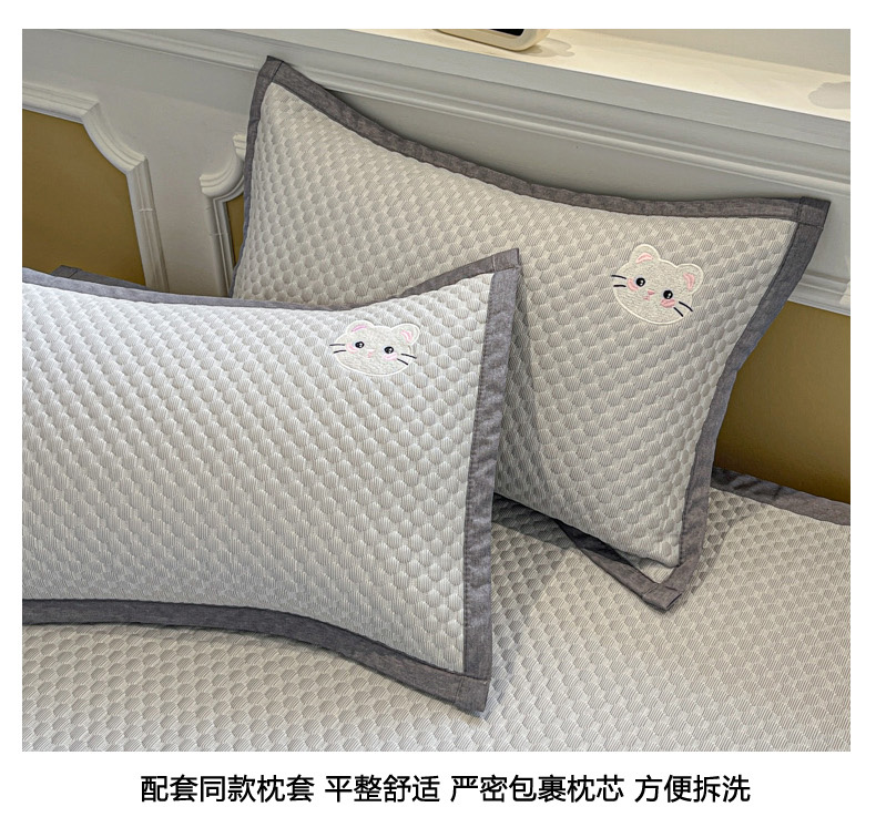 商品名称:沐慕 2025新款绣花凉感淑女喵豆豆凉席 淑女喵-灰