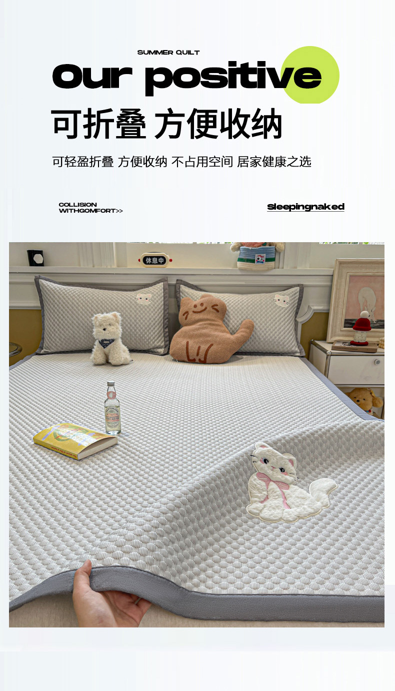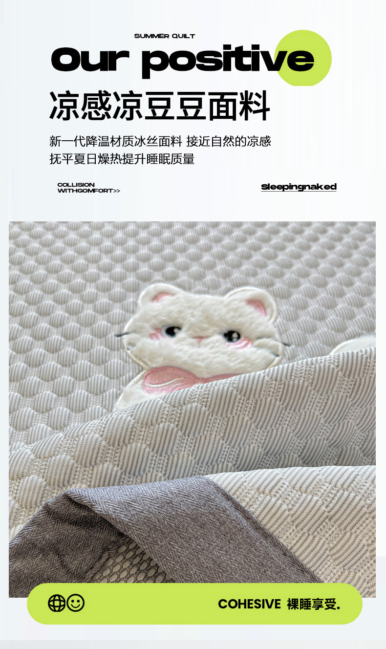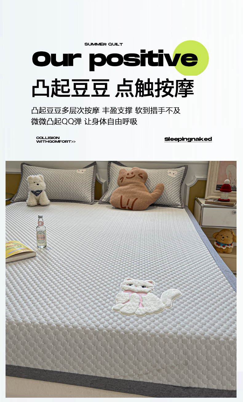 商品名称:沐慕 2025新款绣花凉感淑女喵豆豆凉席 淑女喵-灰