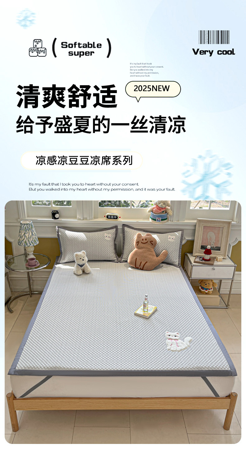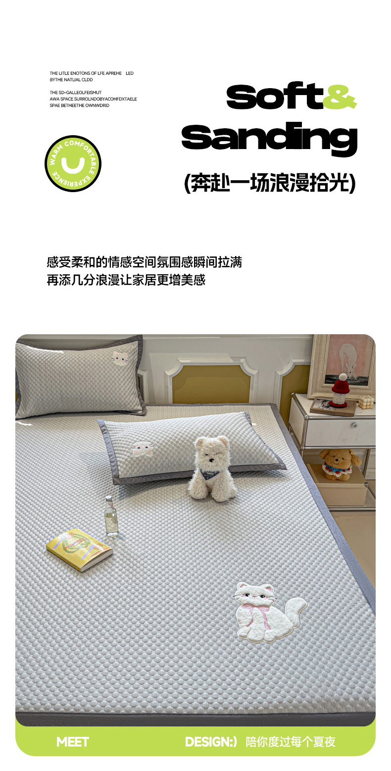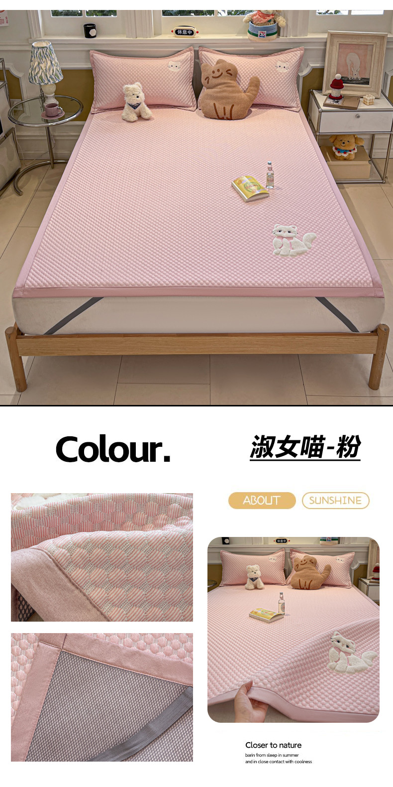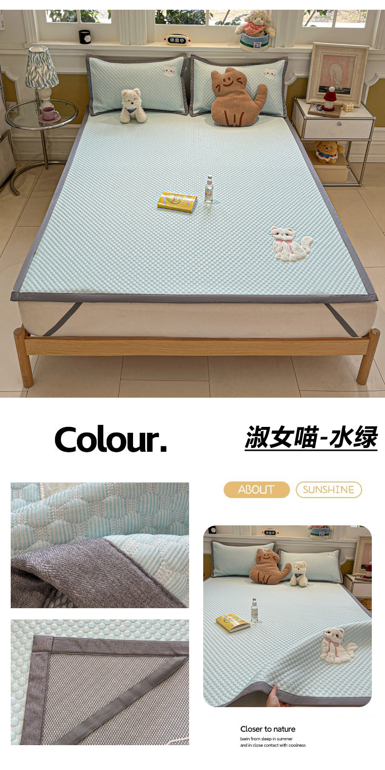 沐慕 2025新款绣花凉感淑女喵豆豆凉席 淑女喵-灰