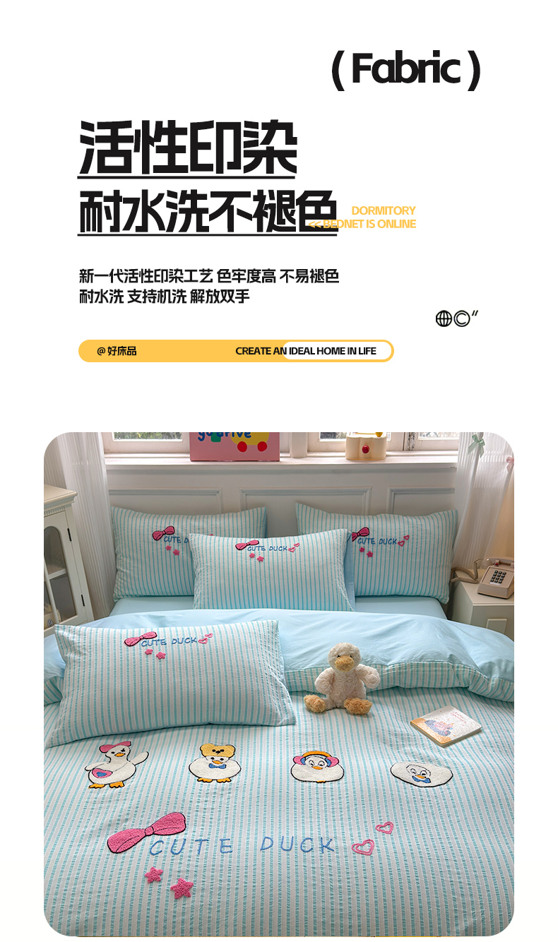 (总)如意朵 2025新款全棉纯棉提花水洗棉绣花四件套(专版花型),开心丫,三只小狗,三只小猫,贪吃卡皮,休闲小猫,抓星熊