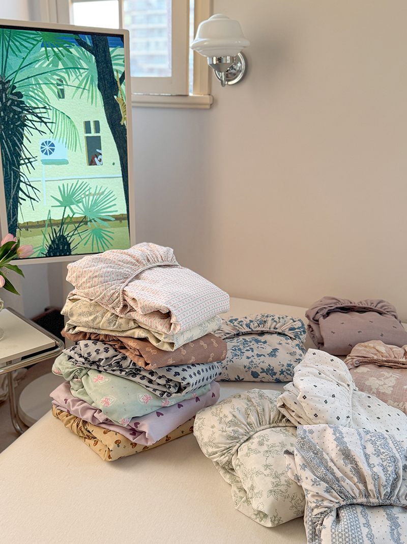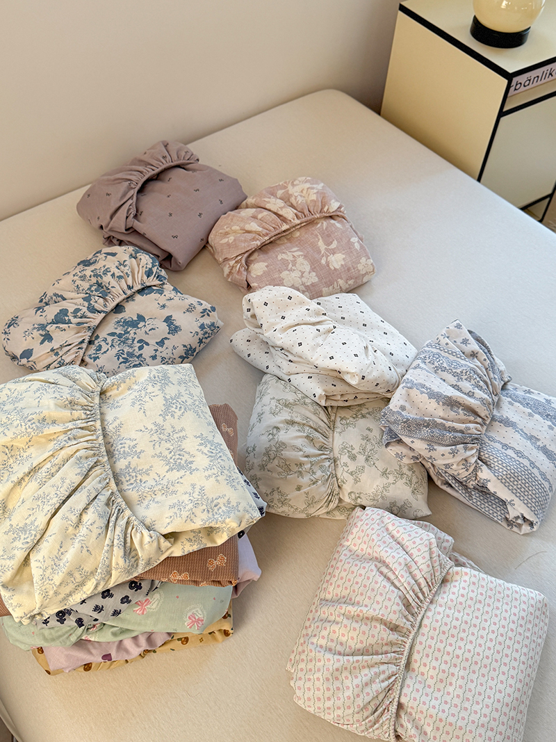 • 91家纺网 家纺一手货源 找家纺 金丝鸟 2025春夏新款全棉纯棉双层纱床笠 床笠单件 组合图仅供展示