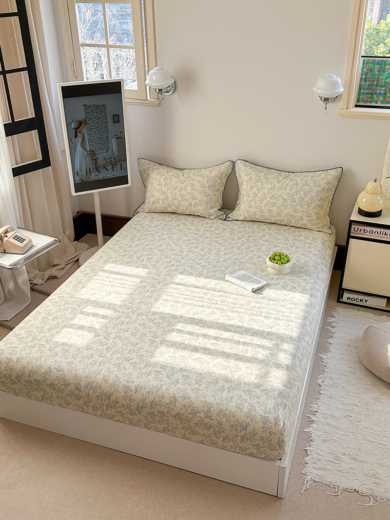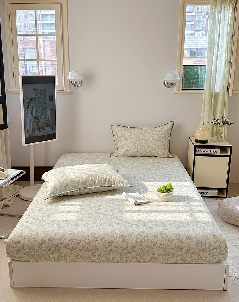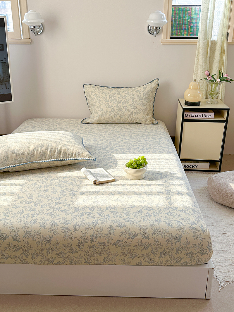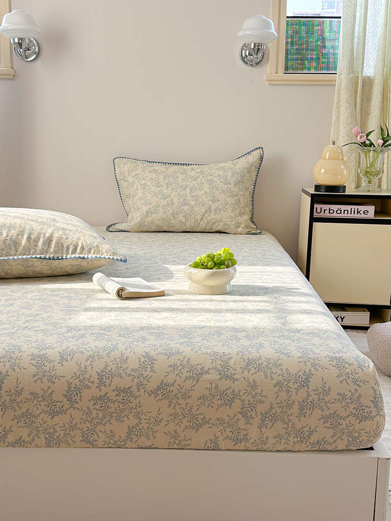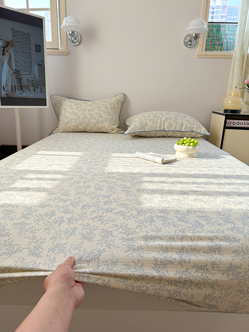 • 91家纺网 家纺一手货源 找家纺 金丝鸟 2025春夏新款全棉纯棉双层纱床笠 床笠单件 蓝色枝丫