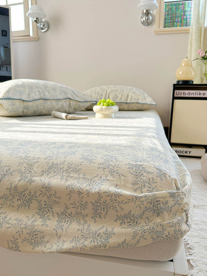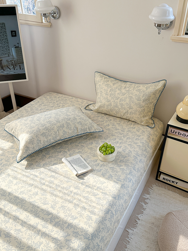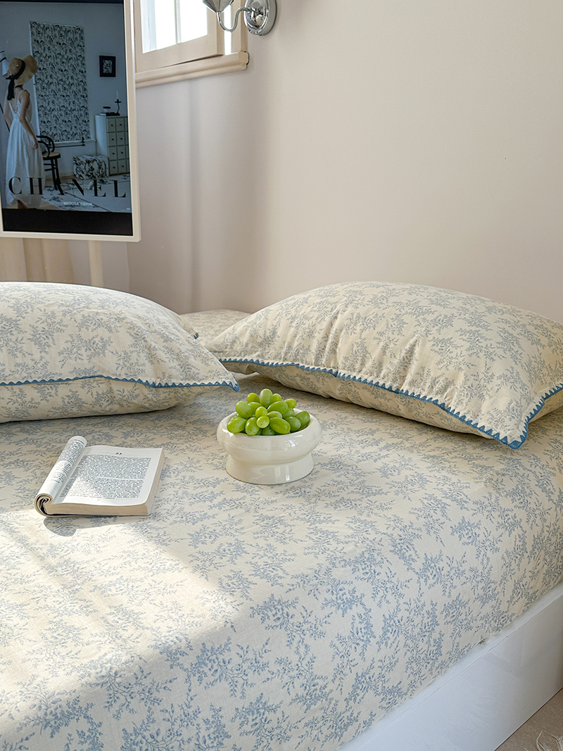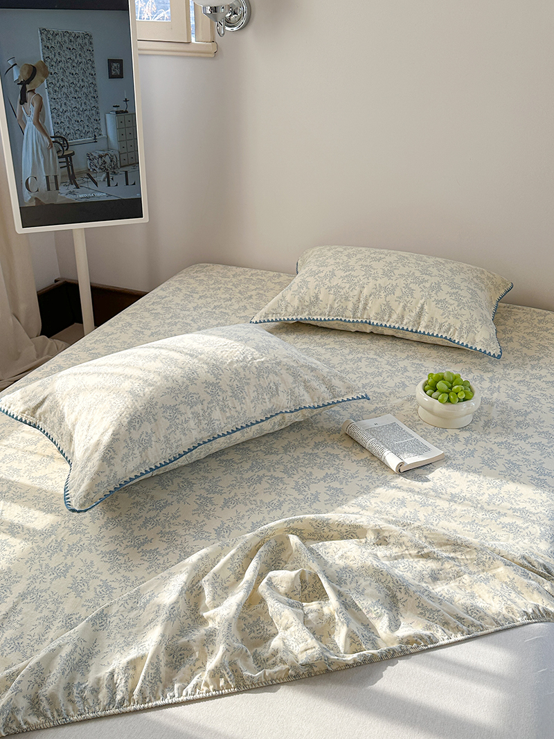 • 91家纺网 家纺一手货源 找家纺 金丝鸟 2025春夏新款全棉纯棉双层纱床笠 床笠单件 蓝色枝丫