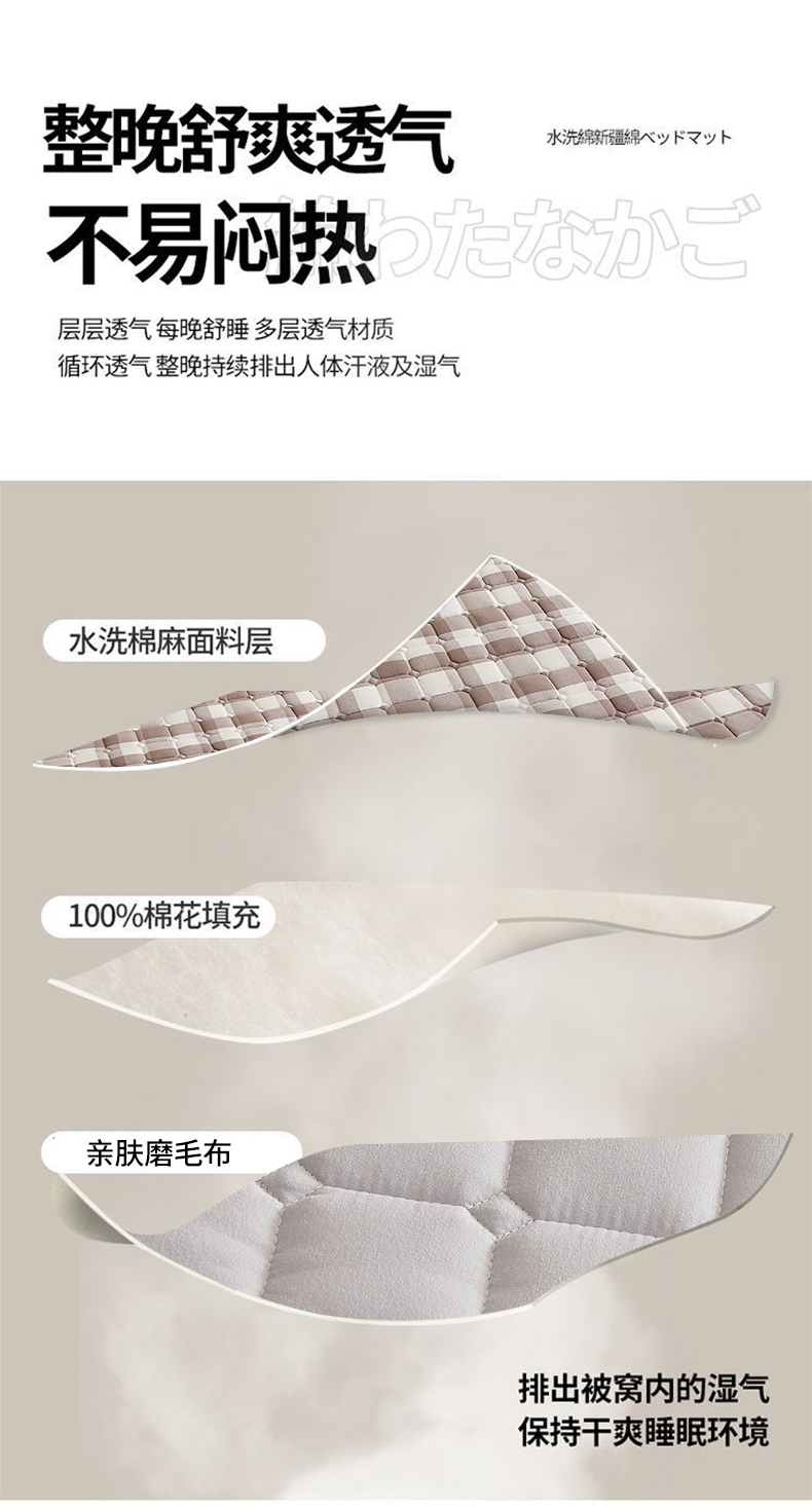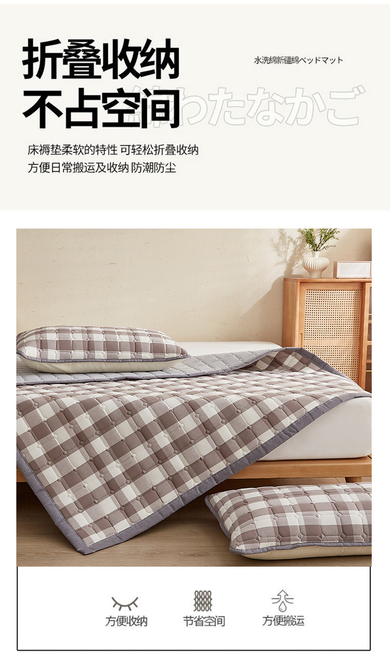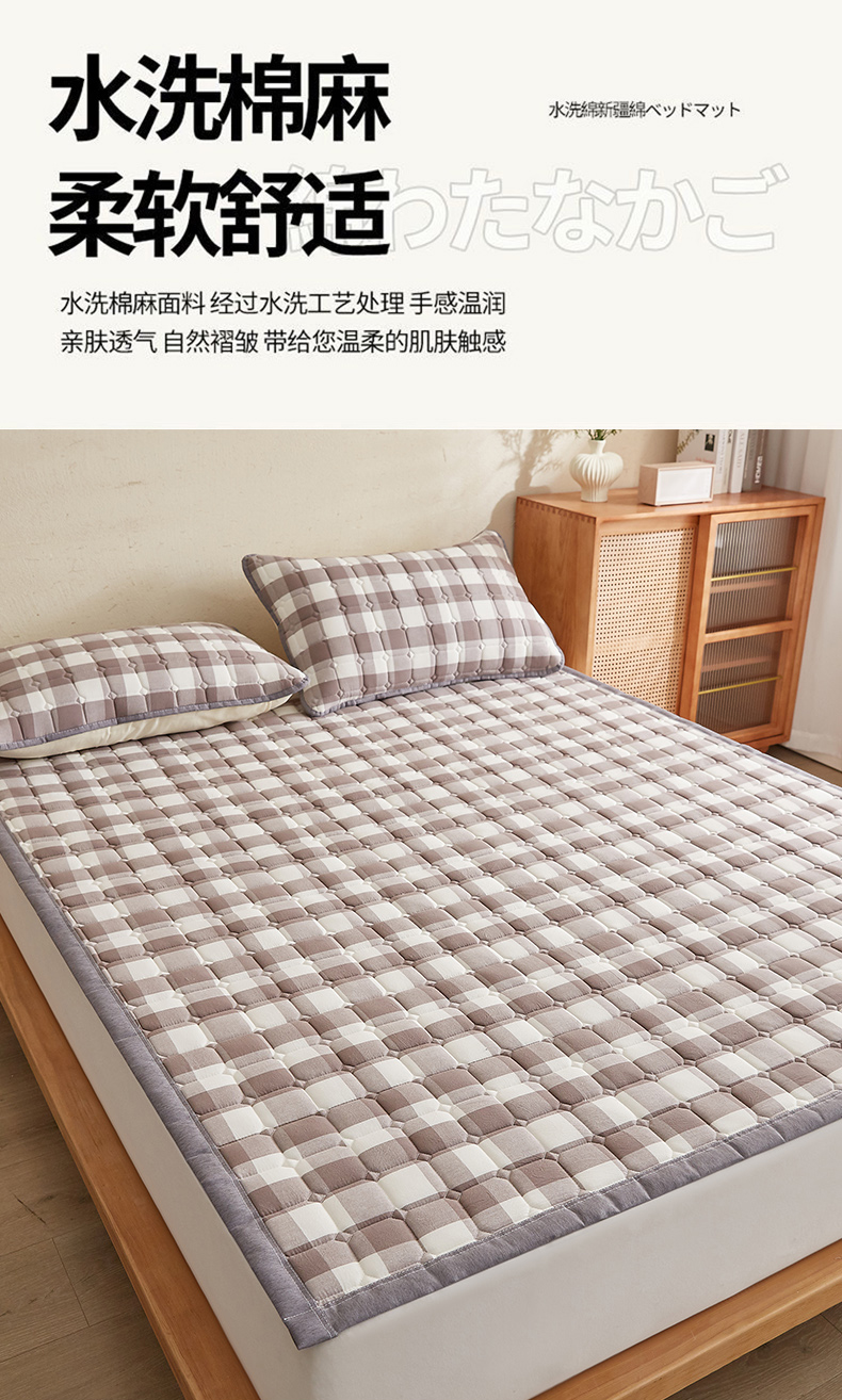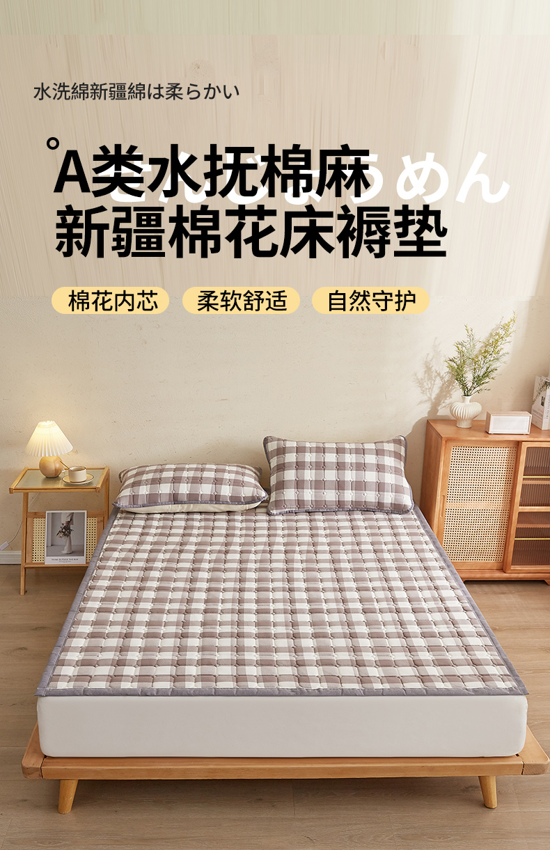 当前位置: 91家纺网 > 商品网购 > 床垫/床褥 > 普通床垫 > 暖季家纺 2025新款A类水抚棉麻新疆棉花床护垫 絮叠床护垫-灰中格