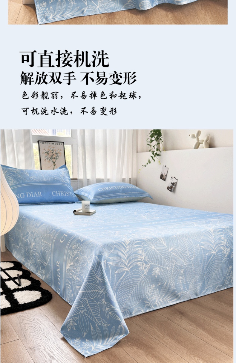 商品名称:乐居家纺 2025新款亲肤舒适活性印染水洗冰丝单床单 芳菲-蓝