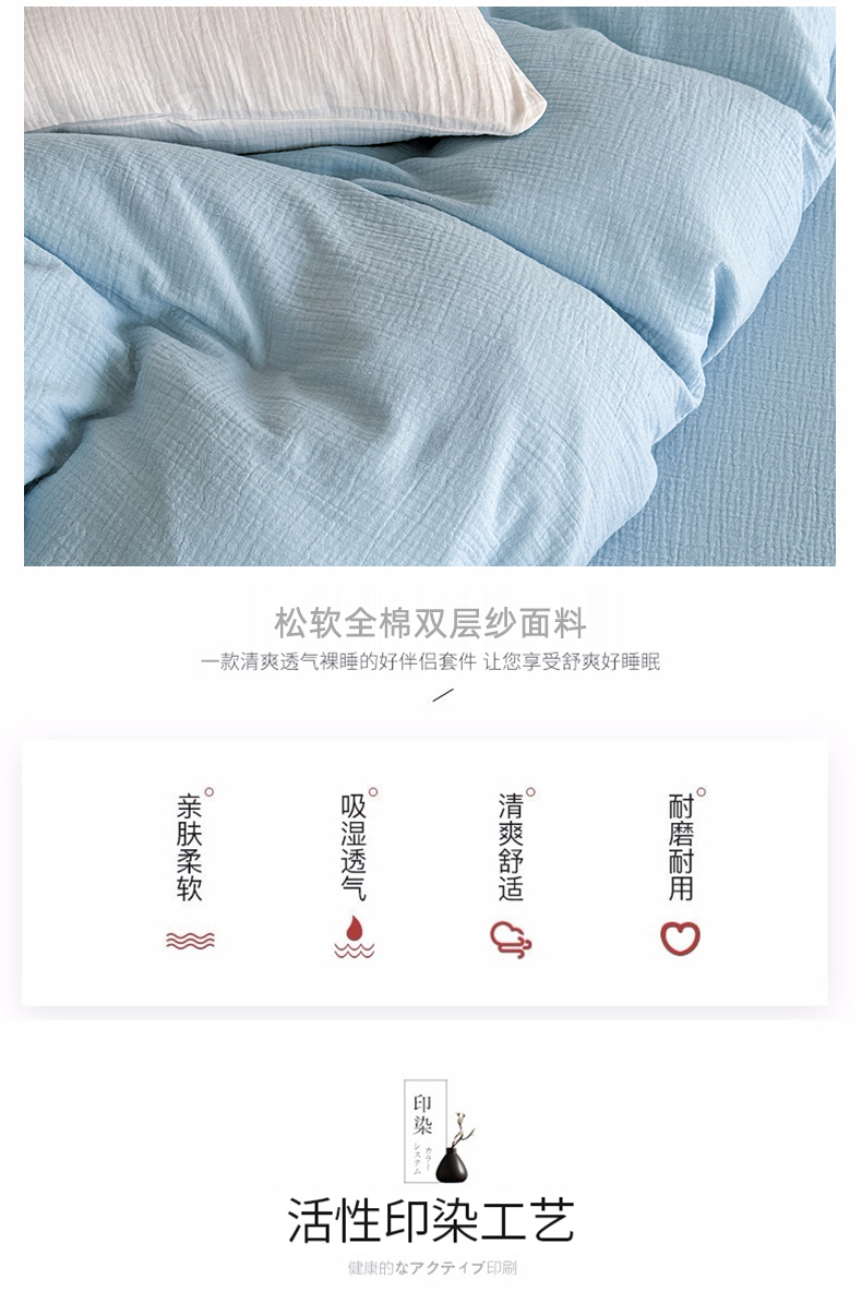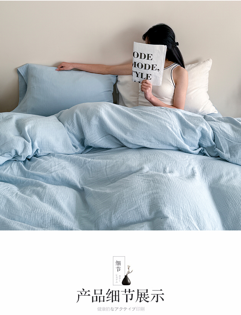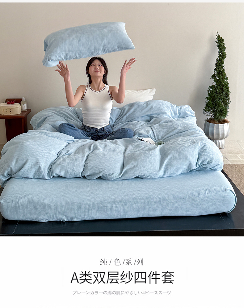 当前位置: 91家纺网 > 商品网购 > 床品套件 > 四件套 > 其它四件套 > 山舍家居 2025新款皱皱双层纱纯色四件套 冰河蓝