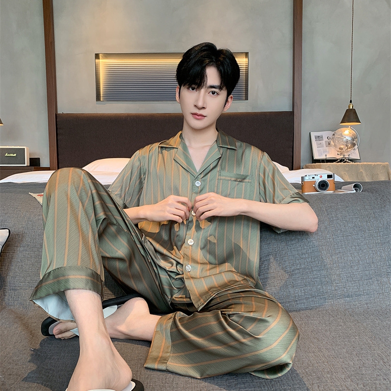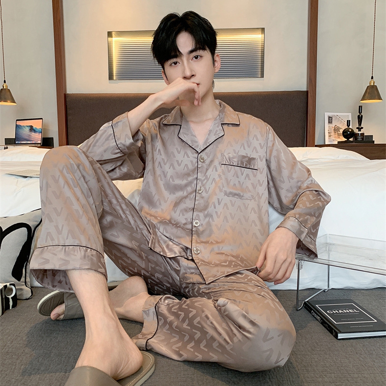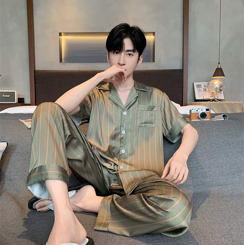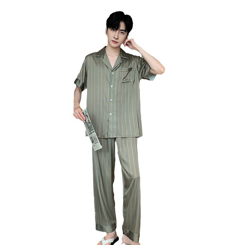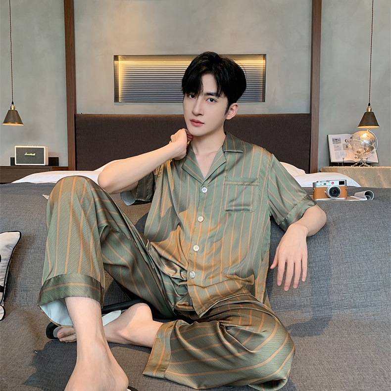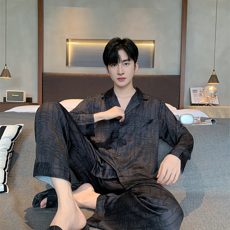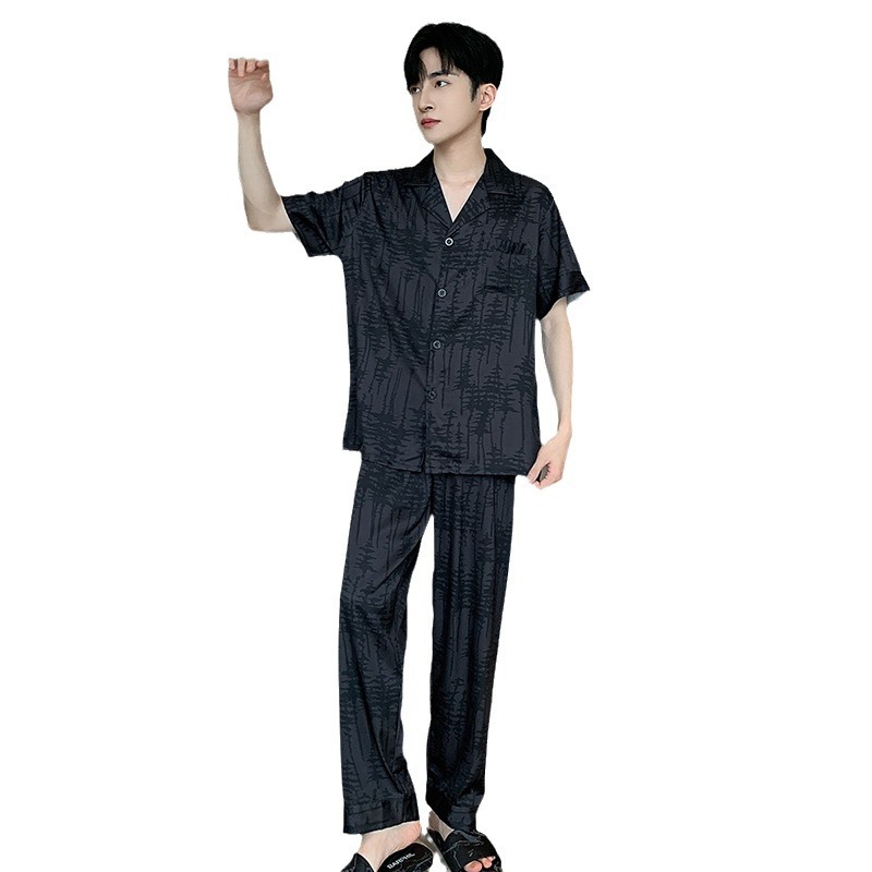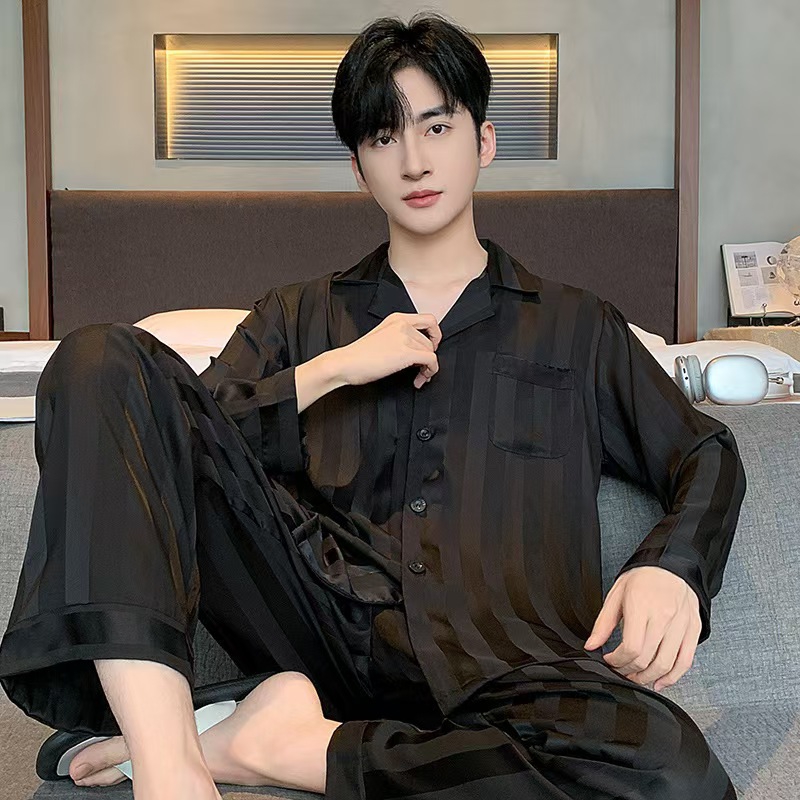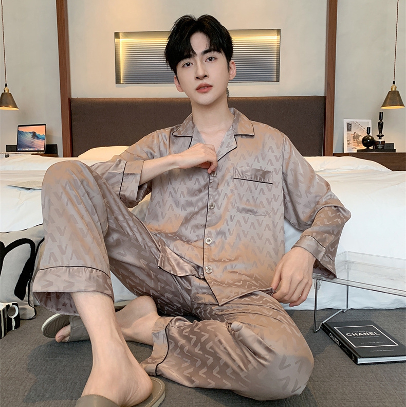 商品名称:(总)洛兰沙家居馆【只代发】【只代发】 2025新款男士冰丝高级感睡衣翻领男士宽松款休闲可外出夏季居家
