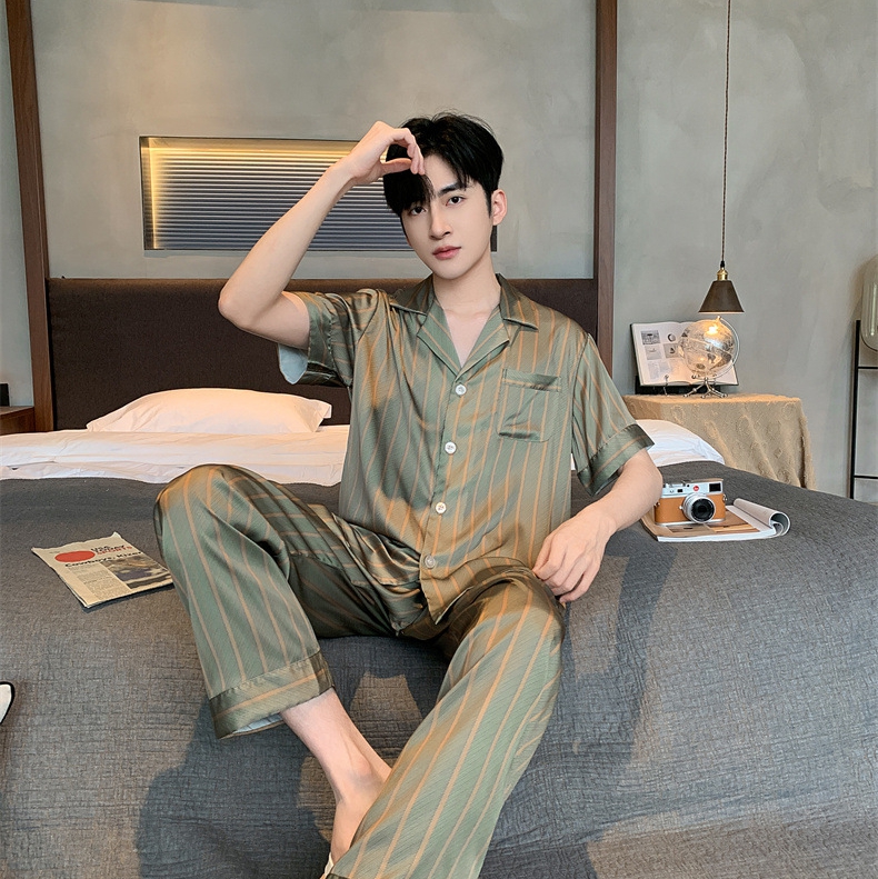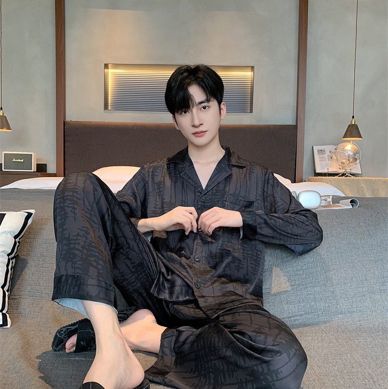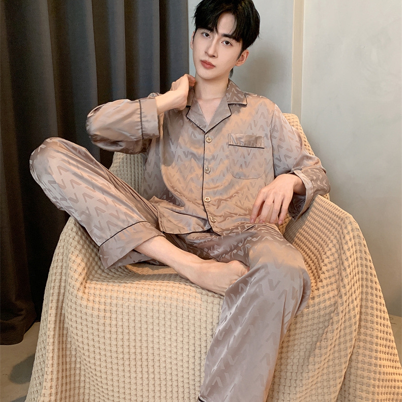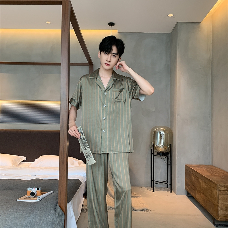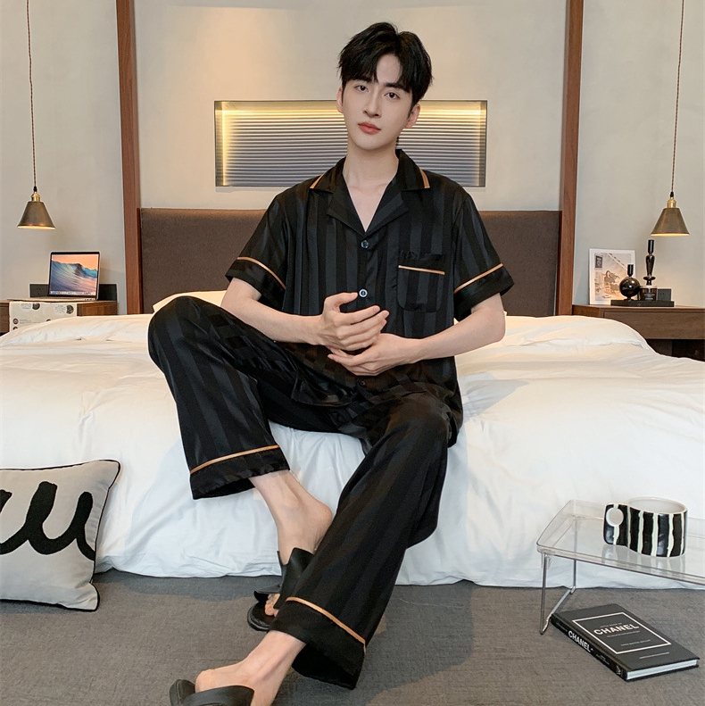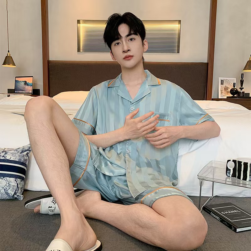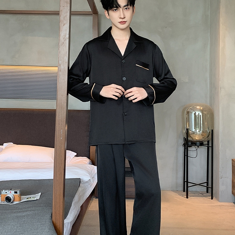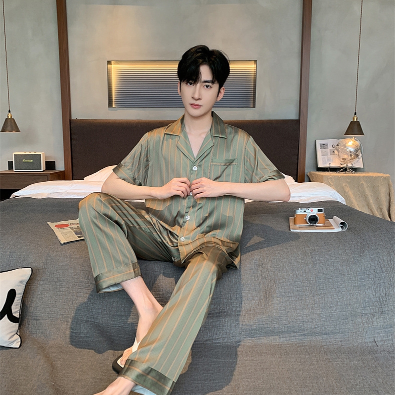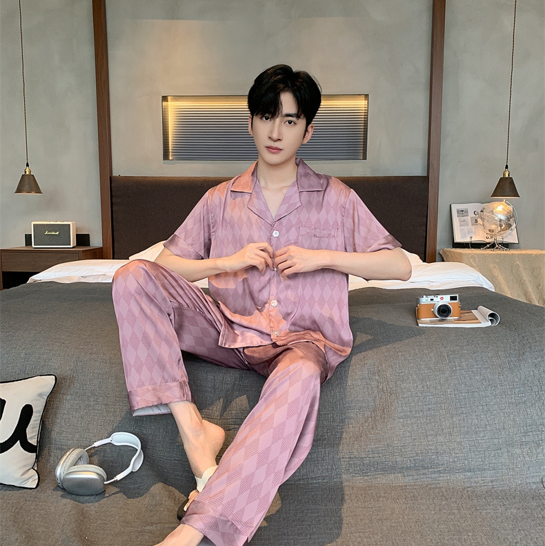 商品名称:(总)洛兰沙家居馆【只代发】【只代发】 2025新款男士冰丝高级感睡衣翻领男士宽松款休闲可外出夏季居家