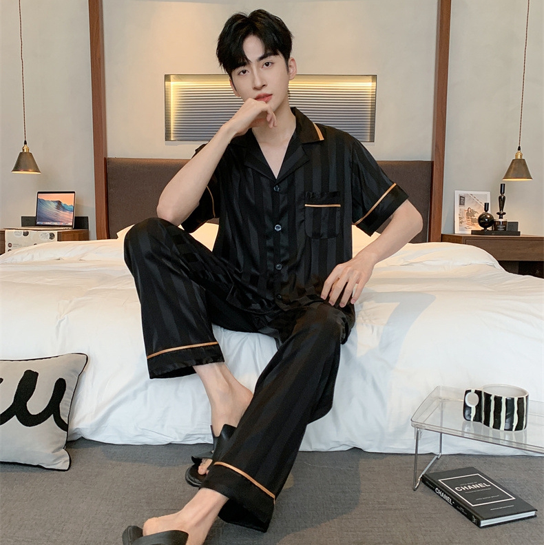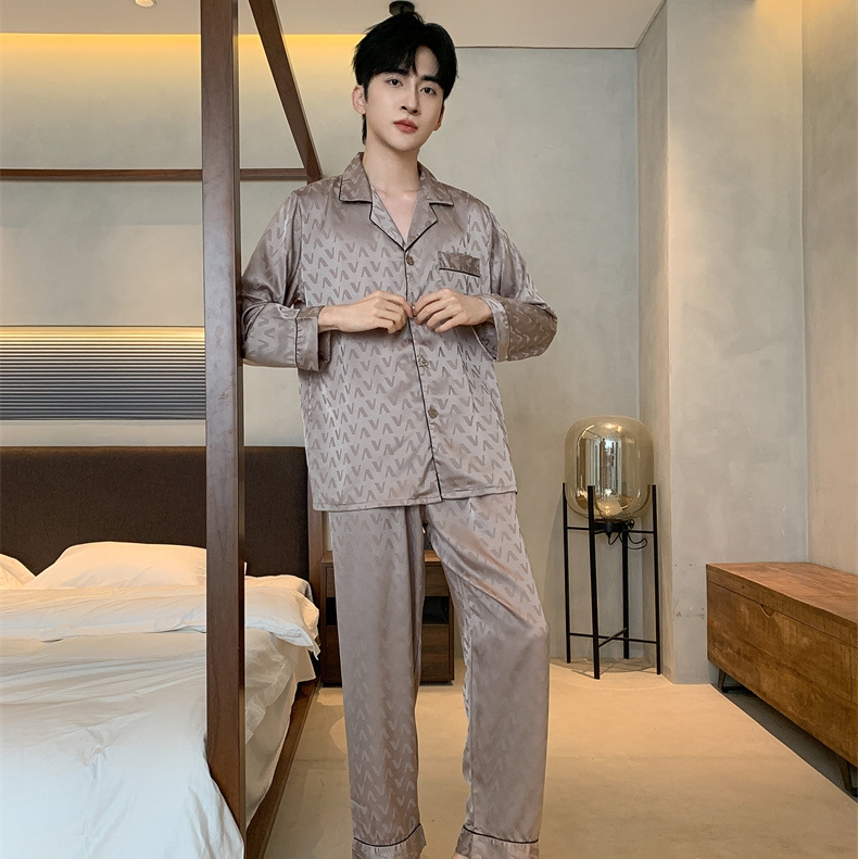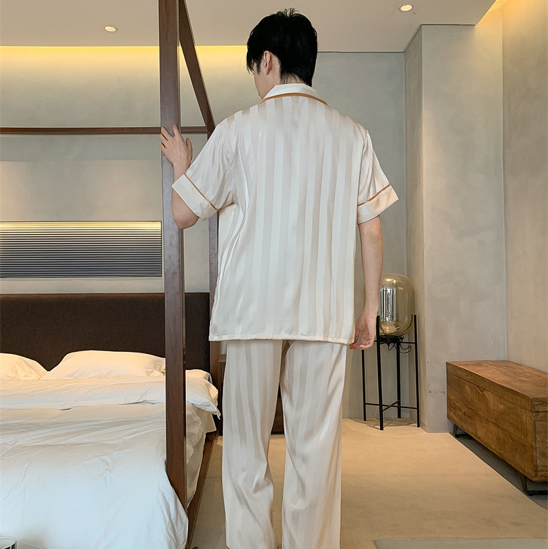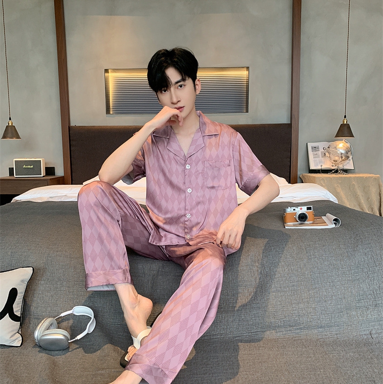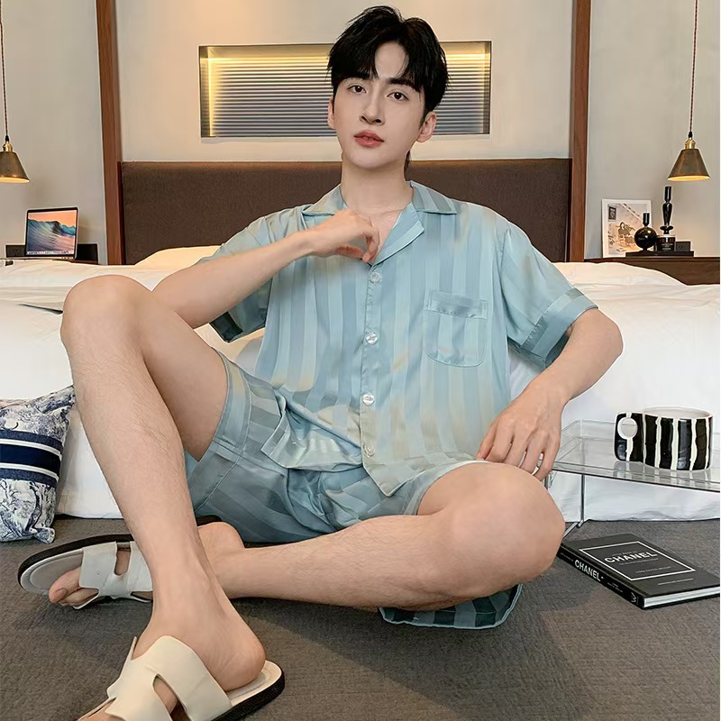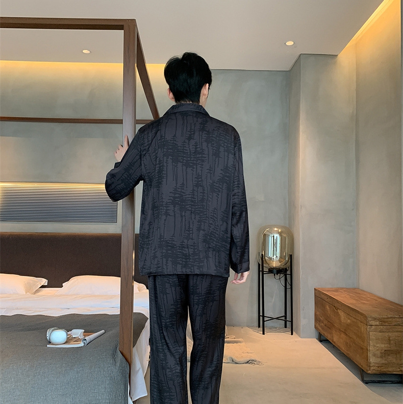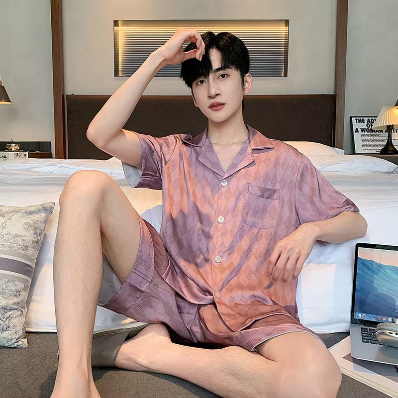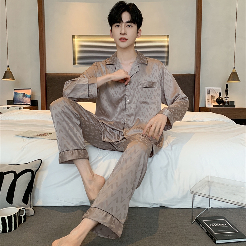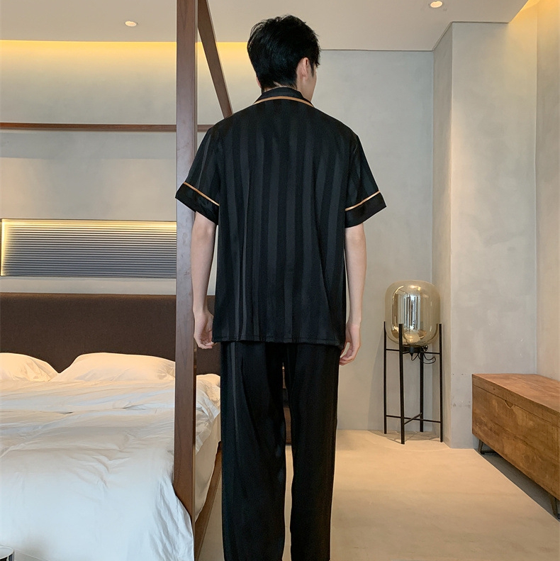 商品名称:(总)洛兰沙家居馆【只代发】【只代发】 2025新款男士冰丝高级感睡衣翻领男士宽松款休闲可外出夏季居家