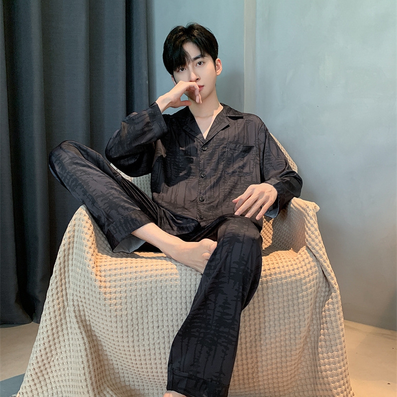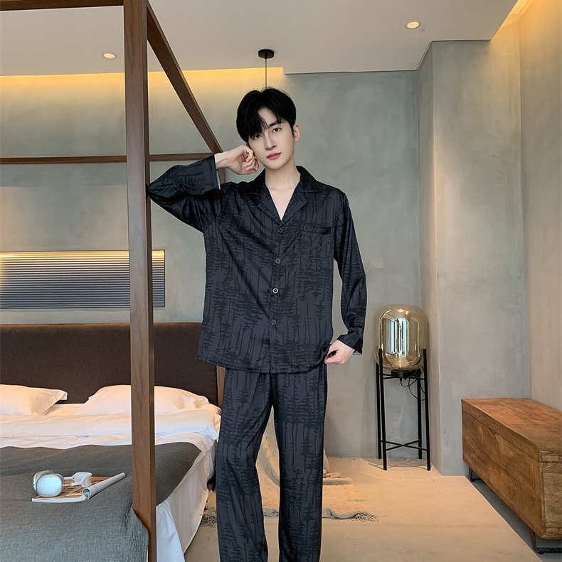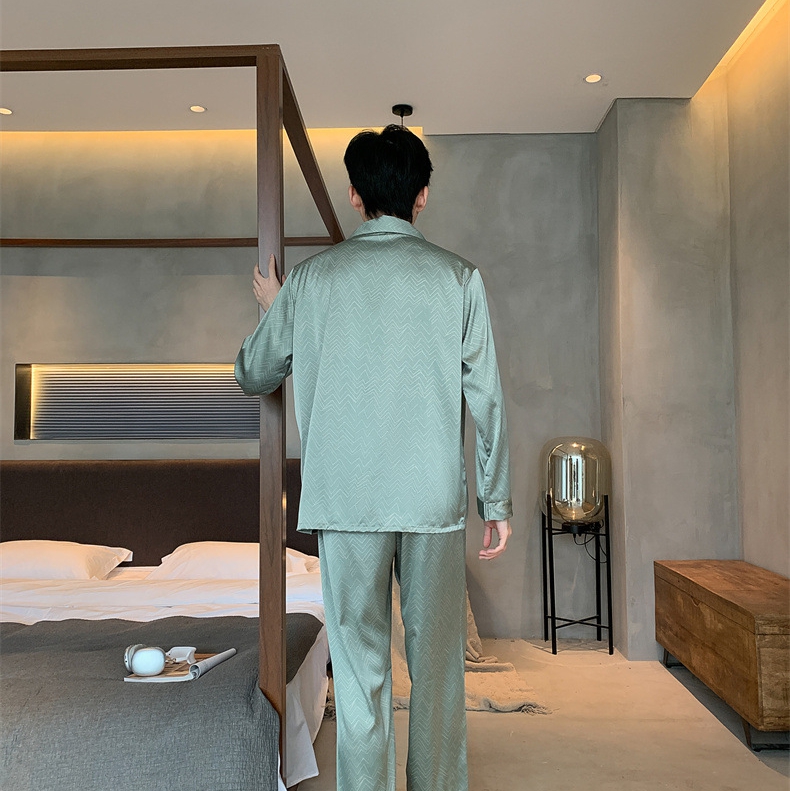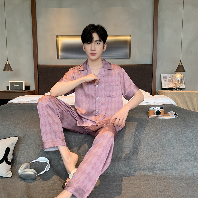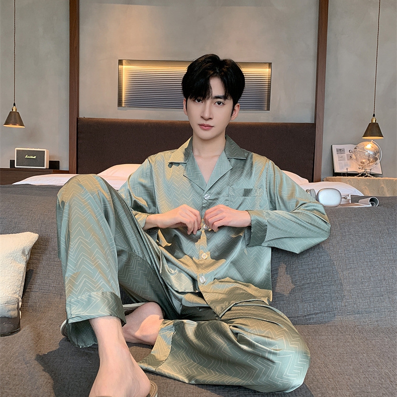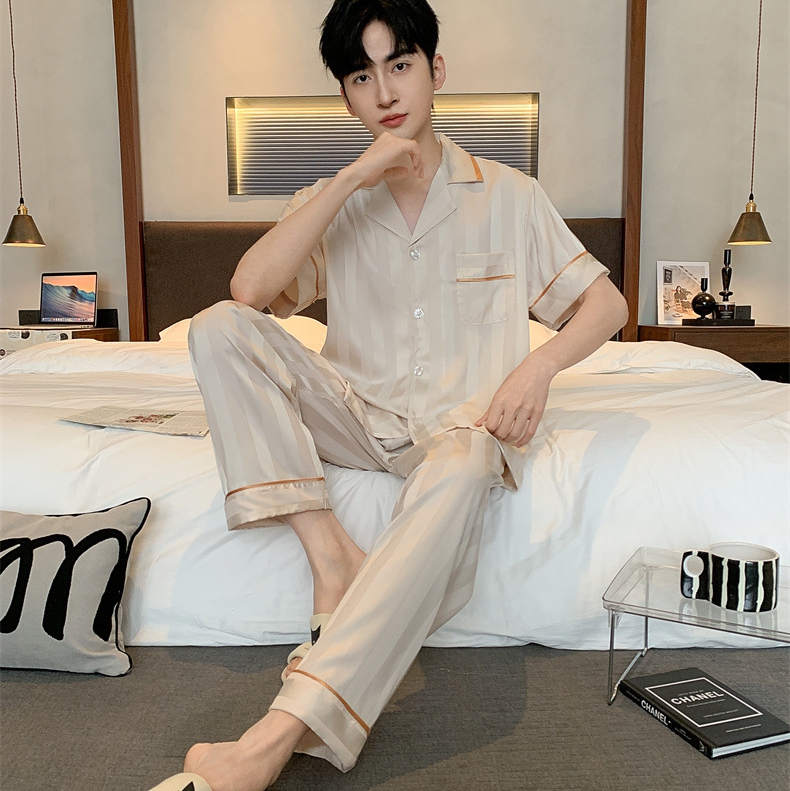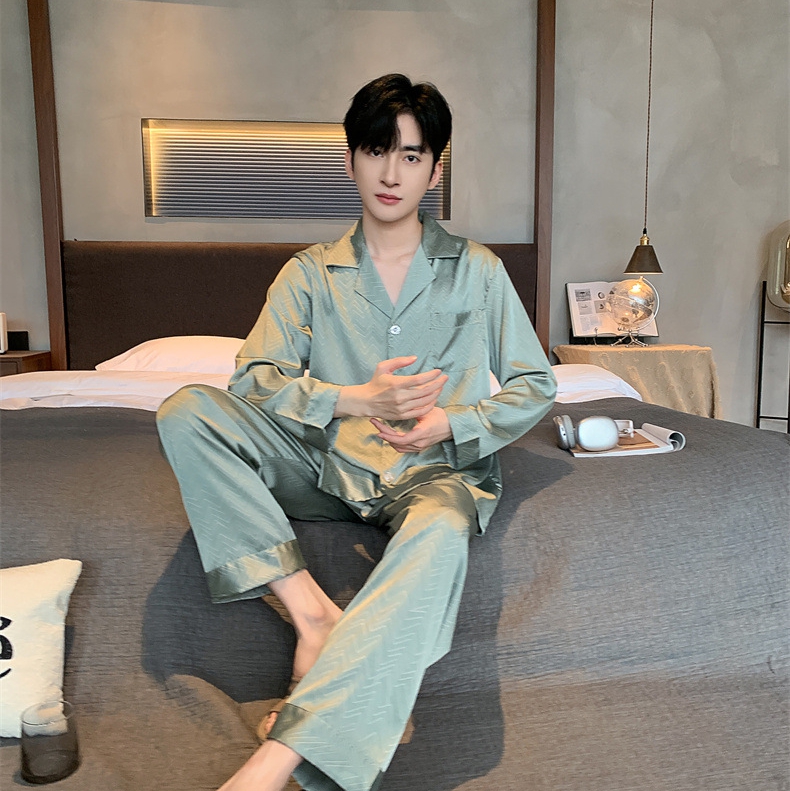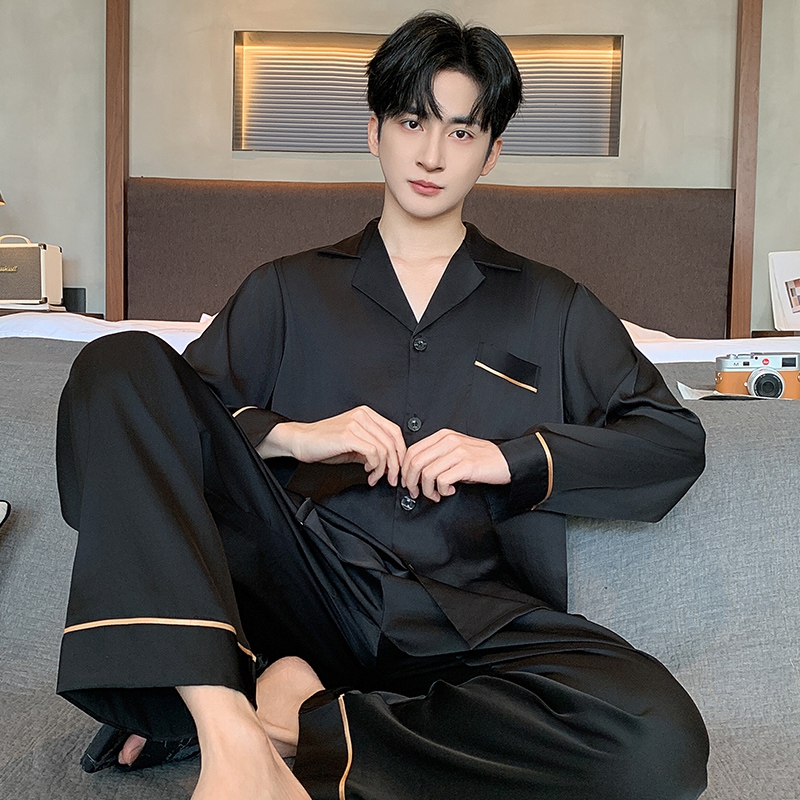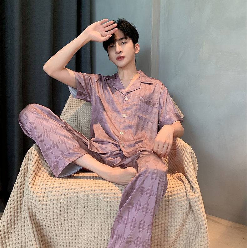 商品名称:(总)洛兰沙家居馆【只代发】【只代发】 2025新款男士冰丝高级感睡衣翻领男士宽松款休闲可外出夏季居家