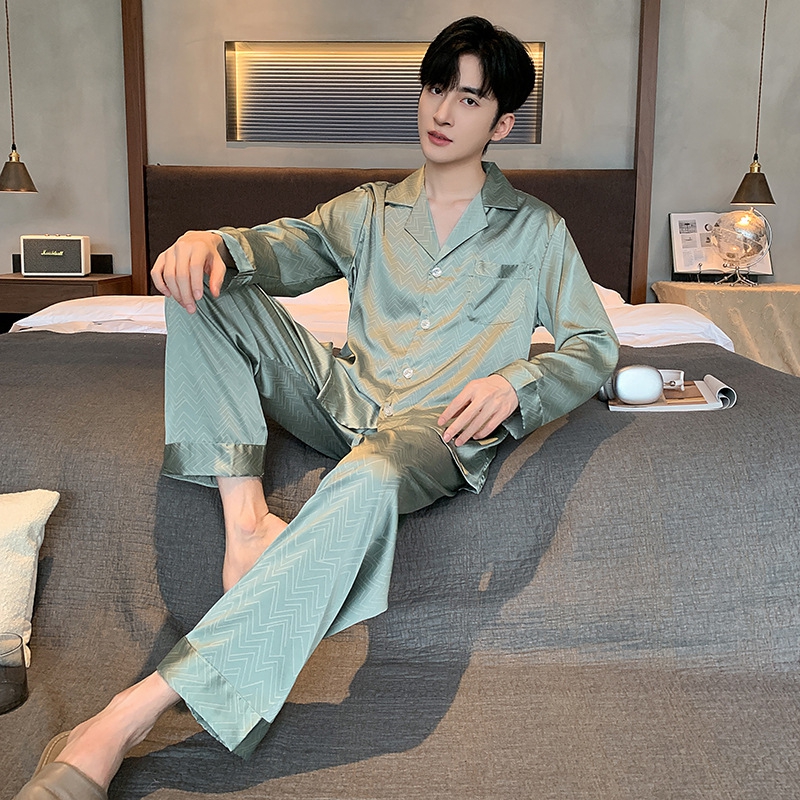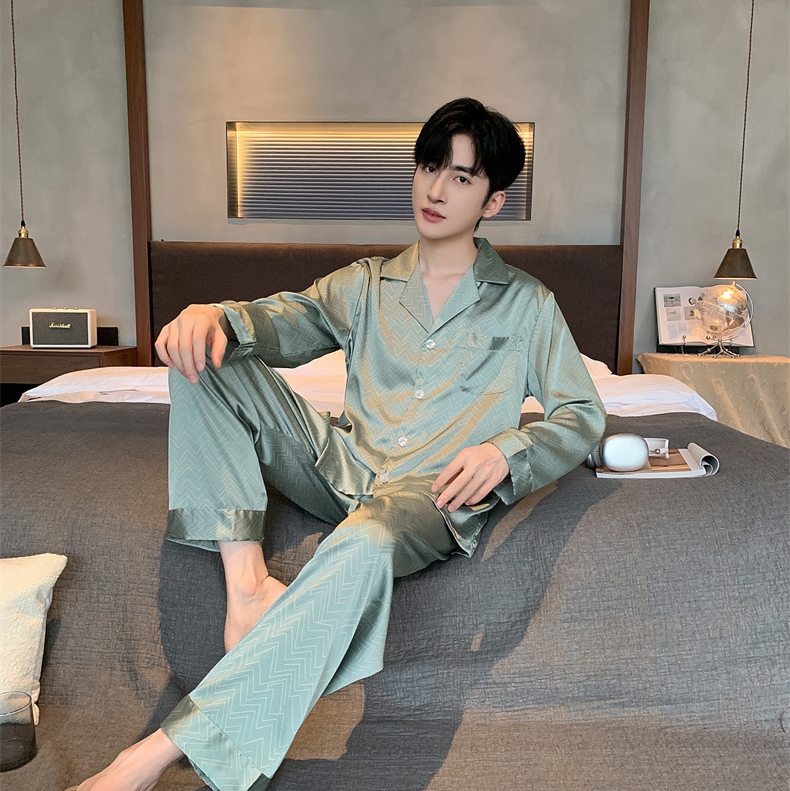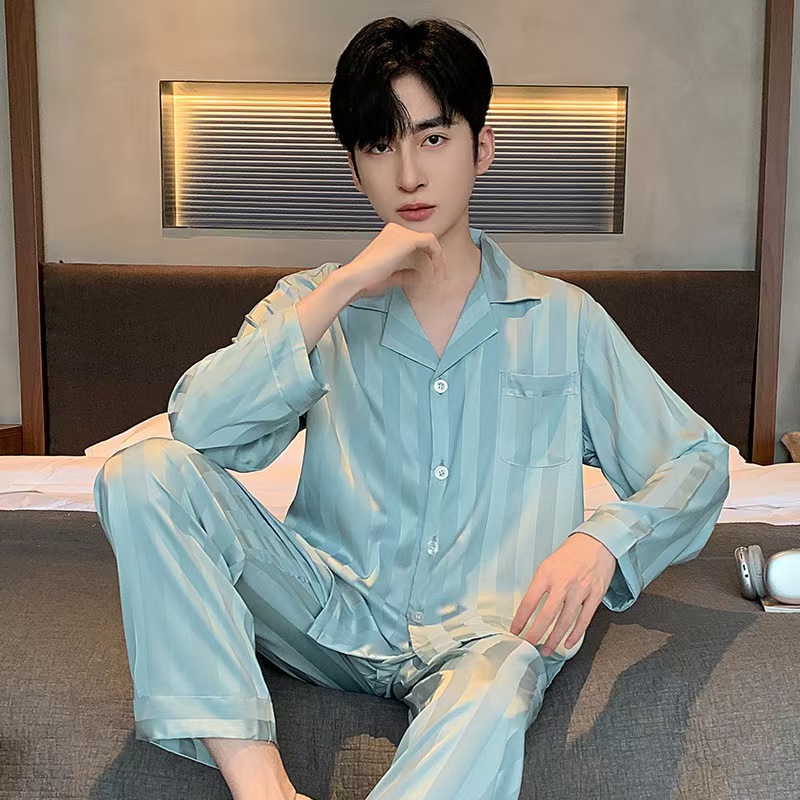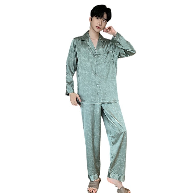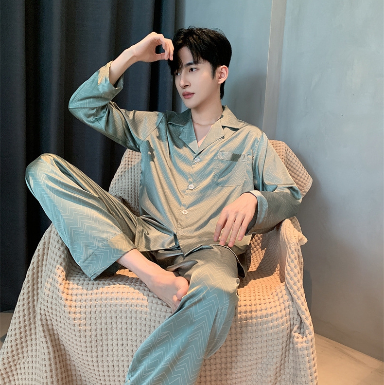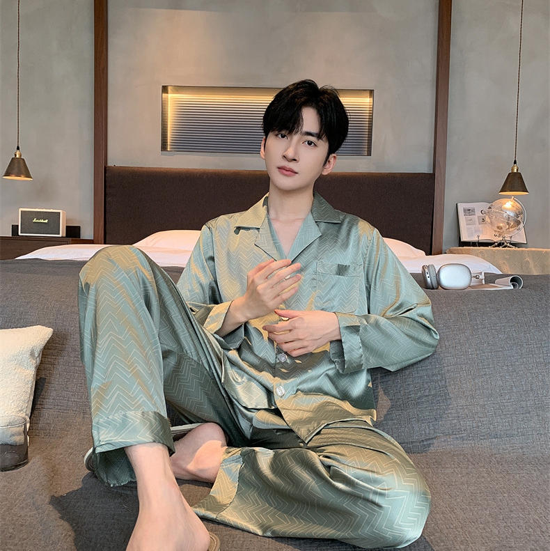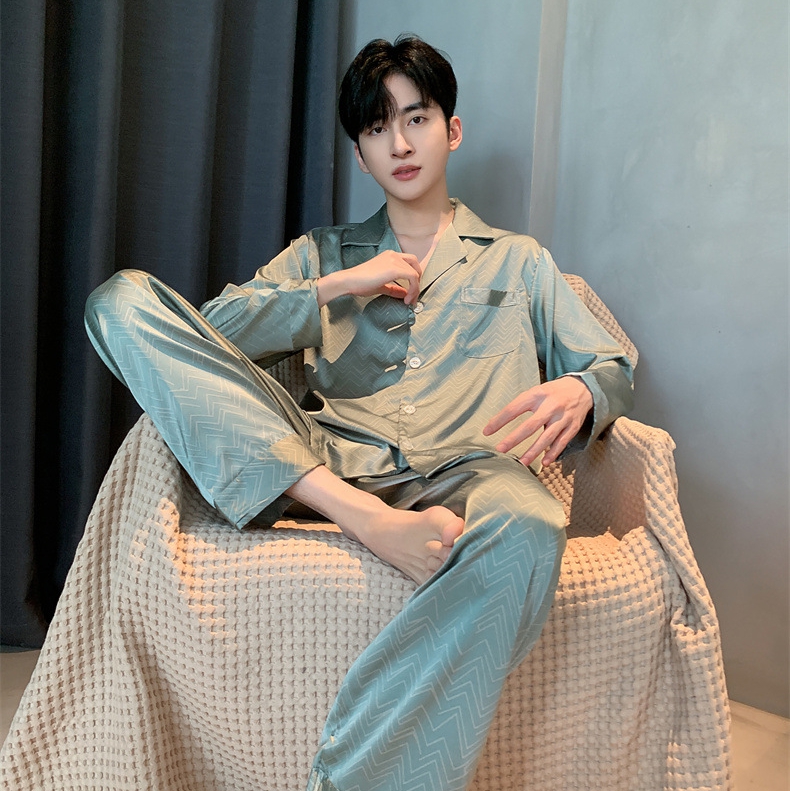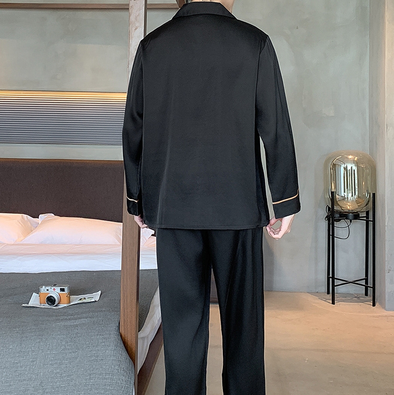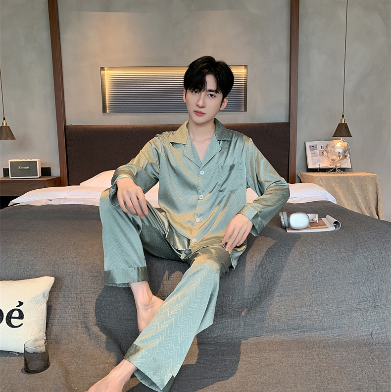 商品名称:(总)洛兰沙家居馆【只代发】【只代发】 2025新款男士冰丝高级感睡衣翻领男士宽松款休闲可外出夏季居家