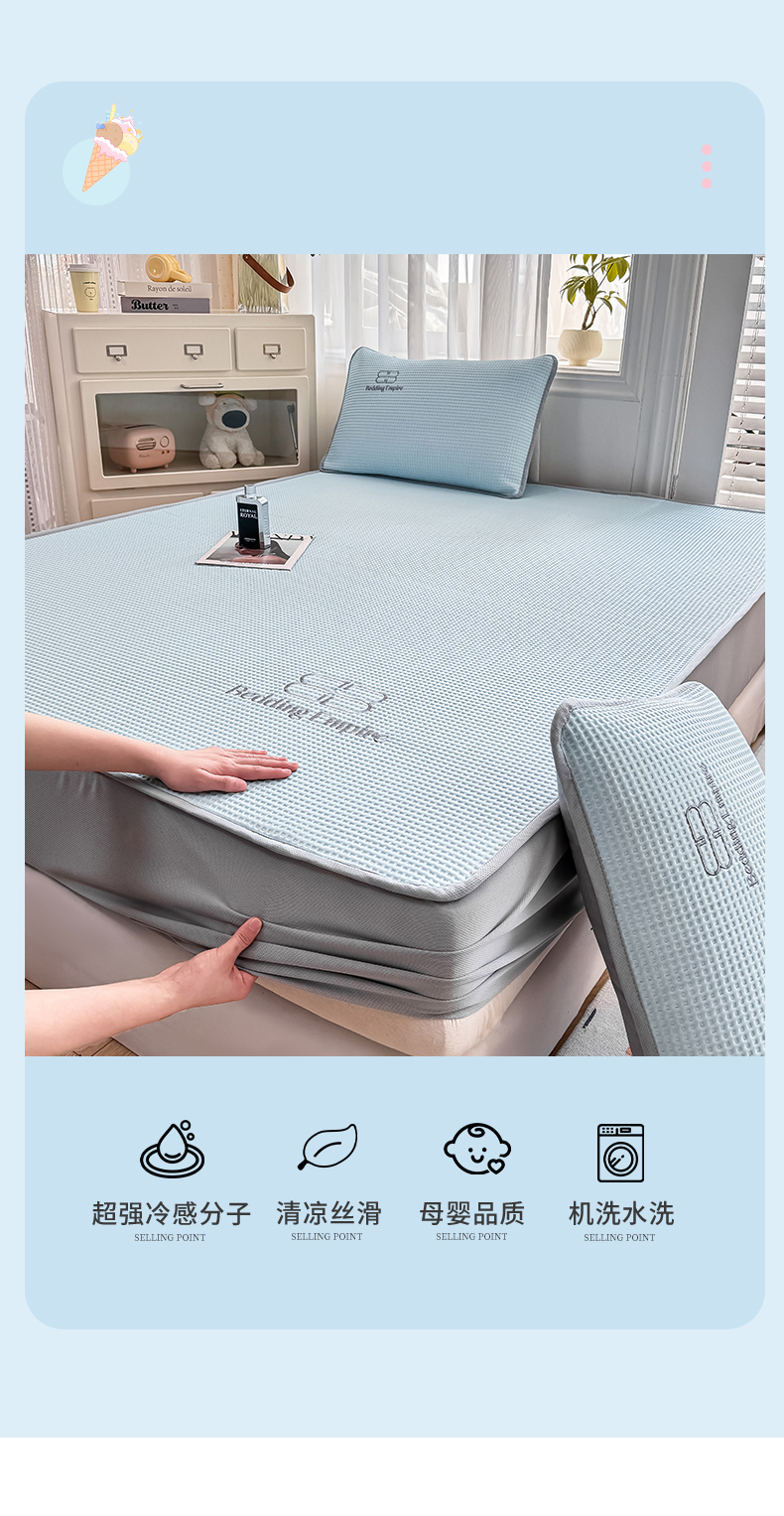 德比尔斯 2025新款乙纶华夫格刺绣熊猫漫野冰豆豆凉席-漫野系列 组合图仅供参考