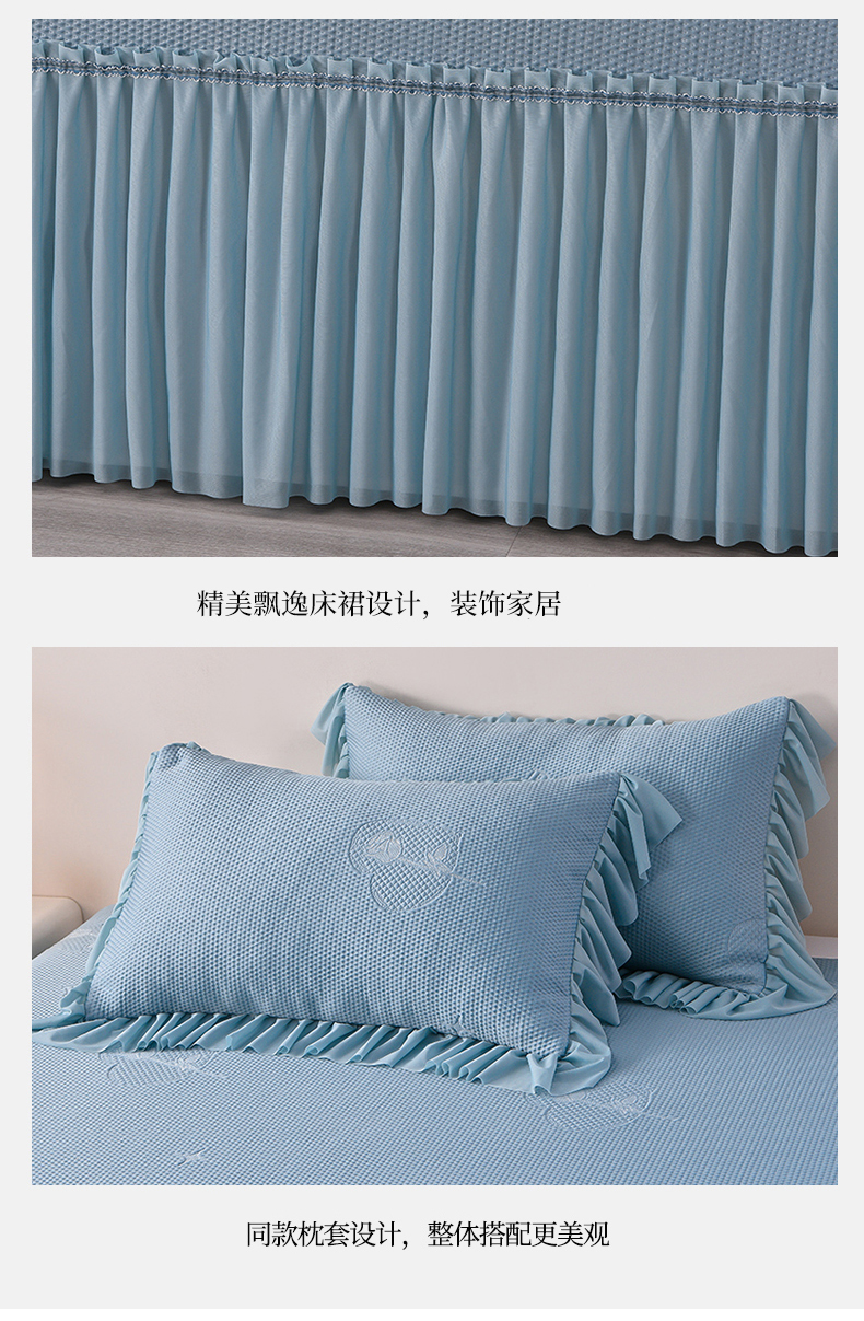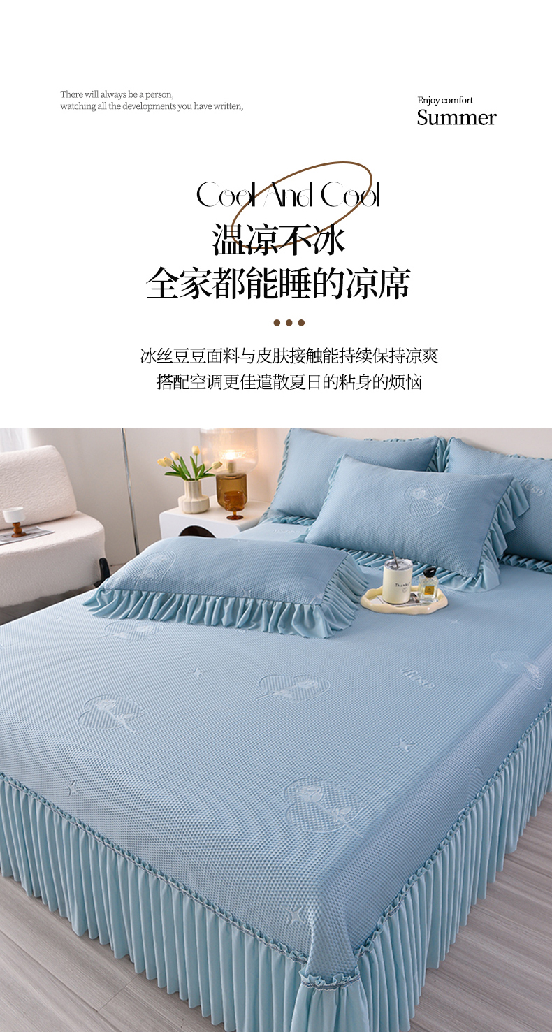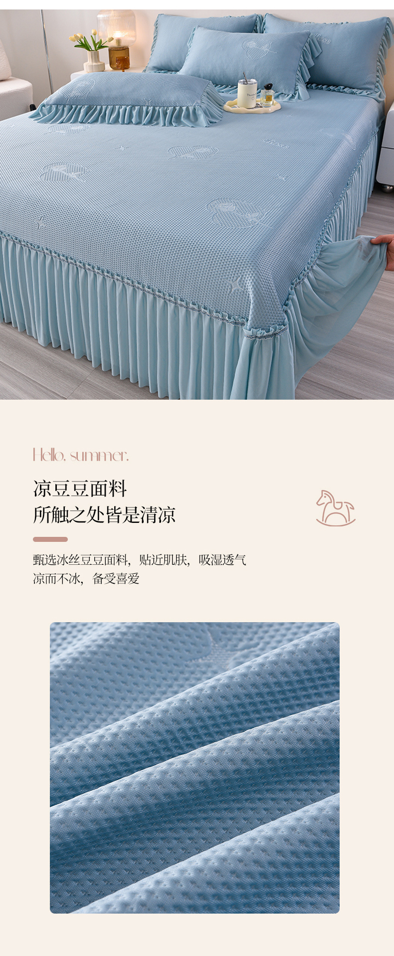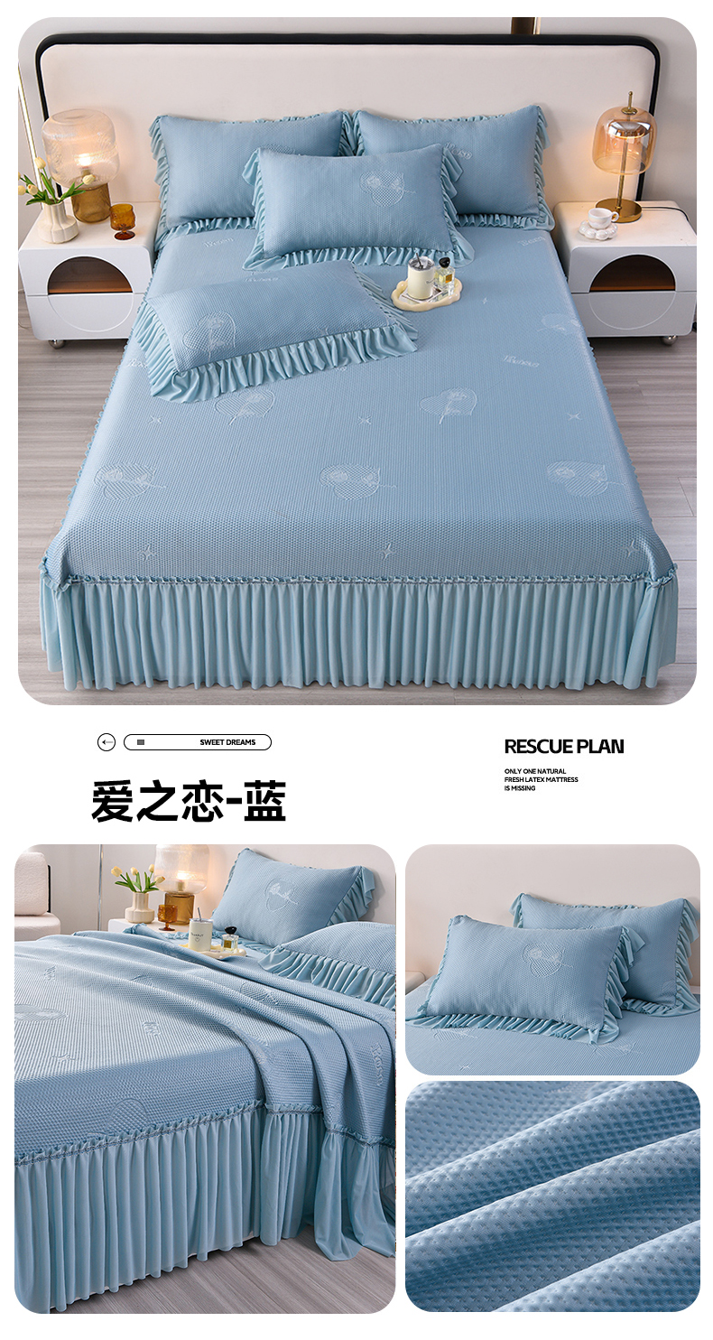 商品名称:畅畅家纺 2025新款立体提花凉豆豆席床裙款凉席 爱之恋-蓝