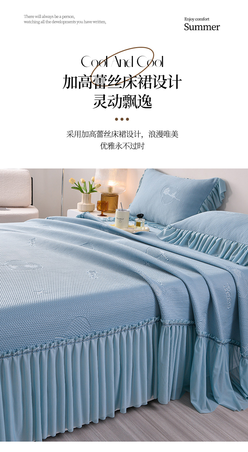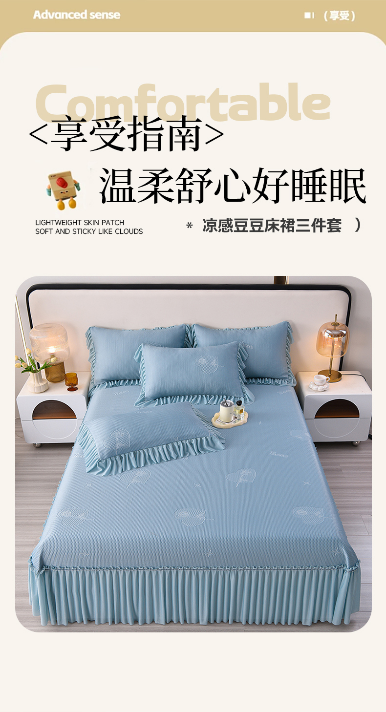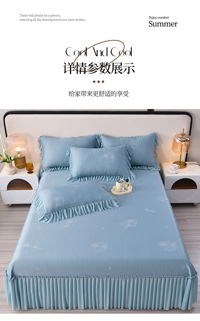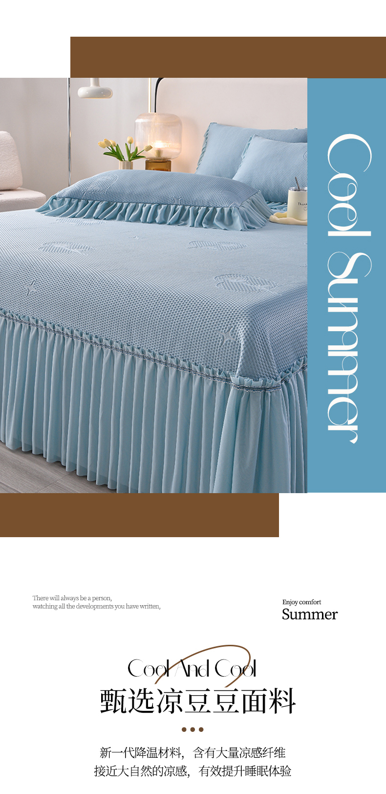 商品名称:畅畅家纺 2025新款立体提花凉豆豆席床裙款凉席 爱之恋-蓝