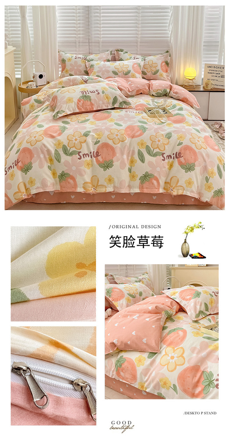 当前位置: 91家纺网 > 商品网购 > 床品套件 > 四件套 > 其它四件套 > 依庭 2025新款全棉印花花卉款四件套单品系列-四件套 笑脸草莓