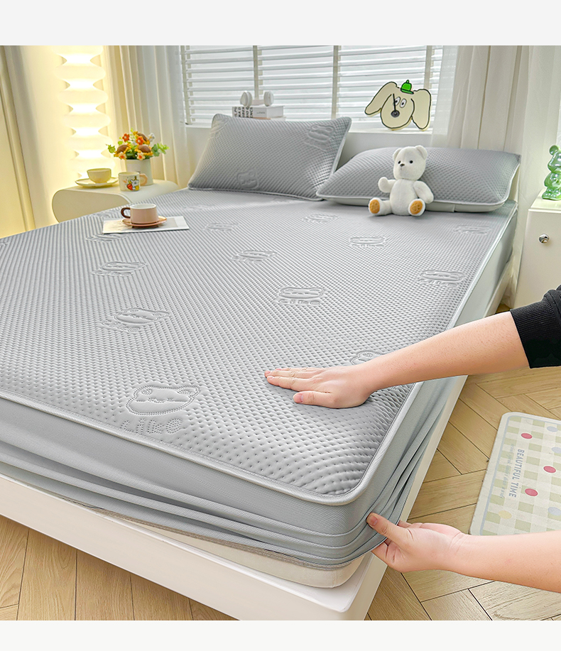 (总)慕木家纺 2025新款小冰熊凉感冰丝凉席夏被四件套 床笠款
