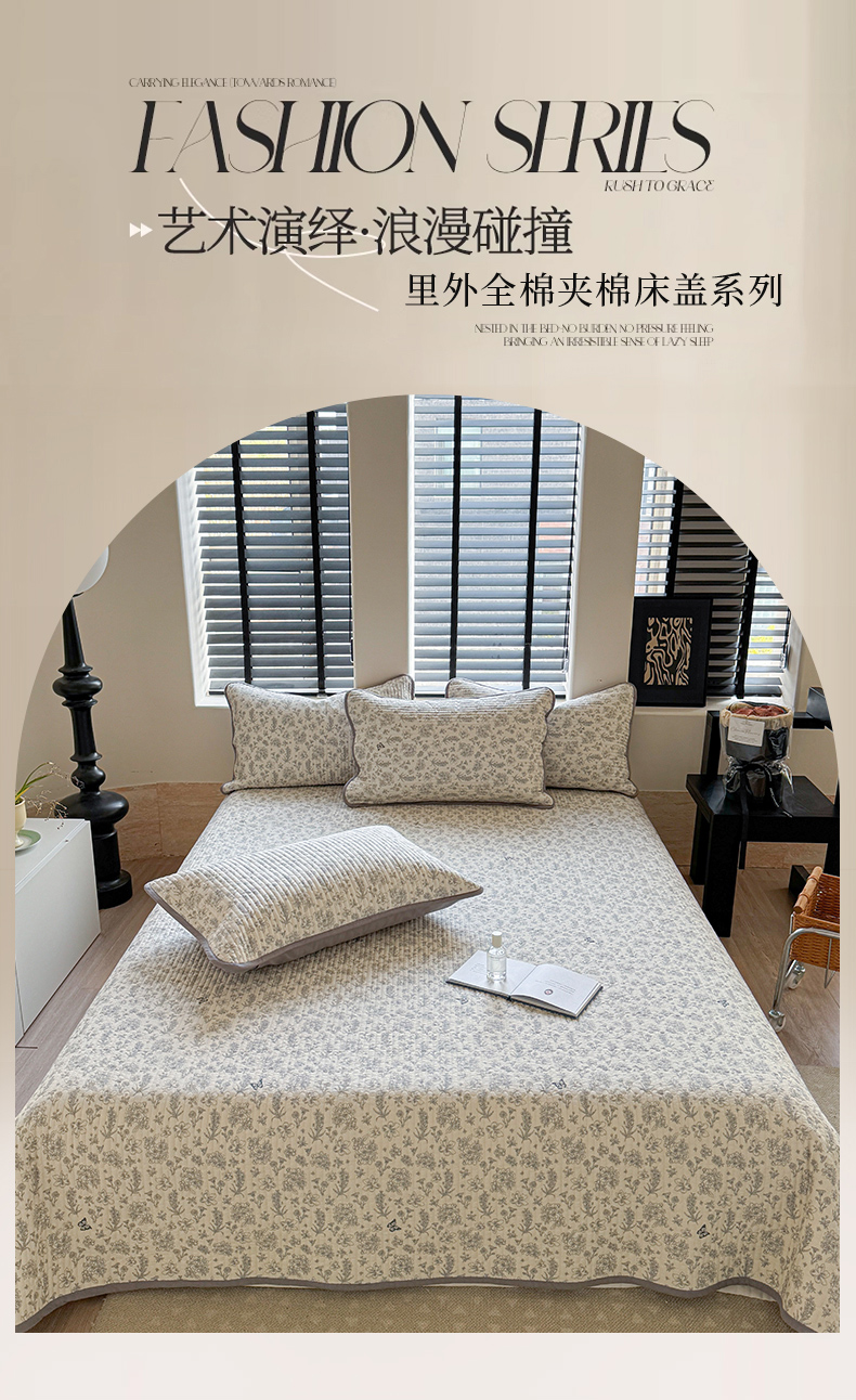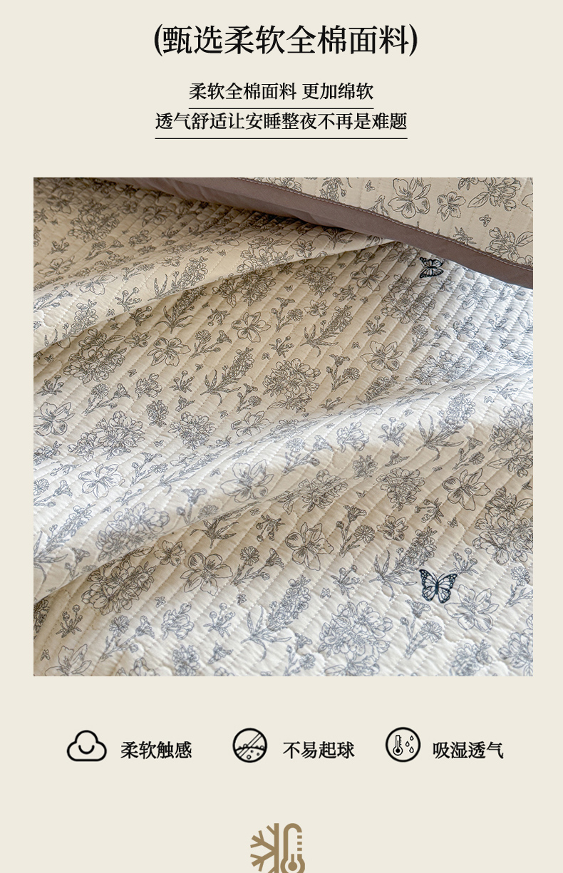 茉夕家纺 2025新款里外全棉夹棉床盖系列 蝶恋花