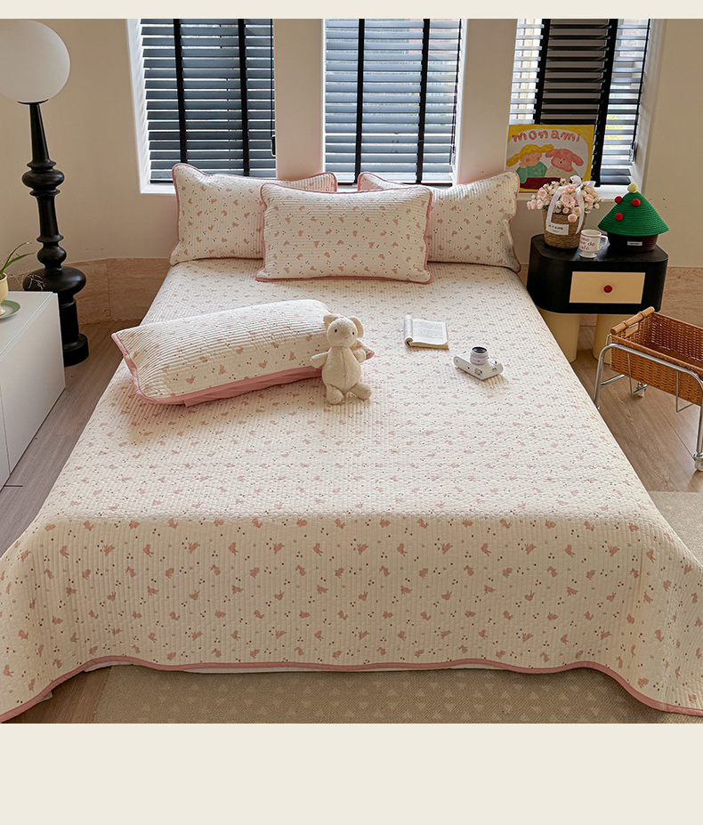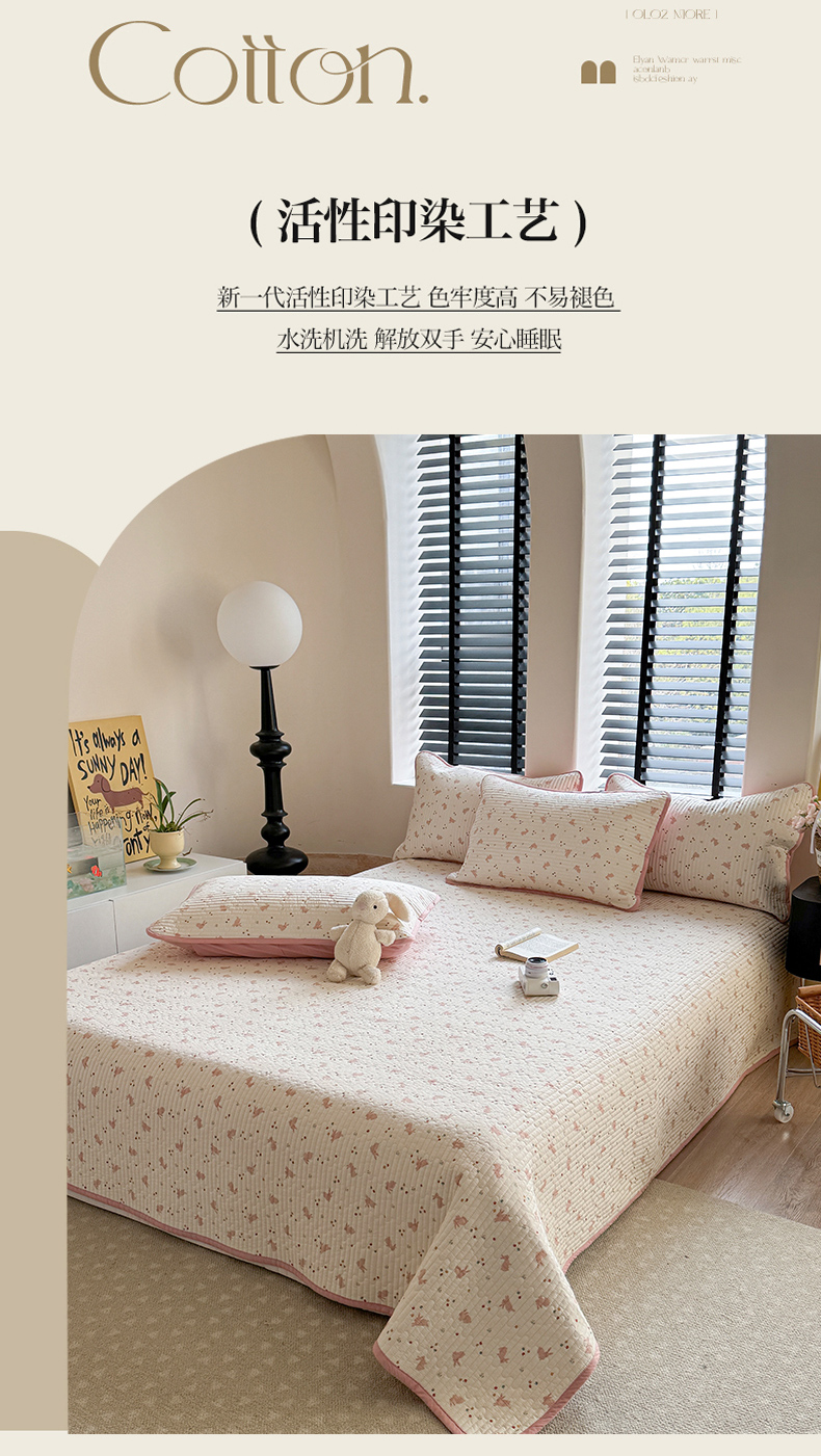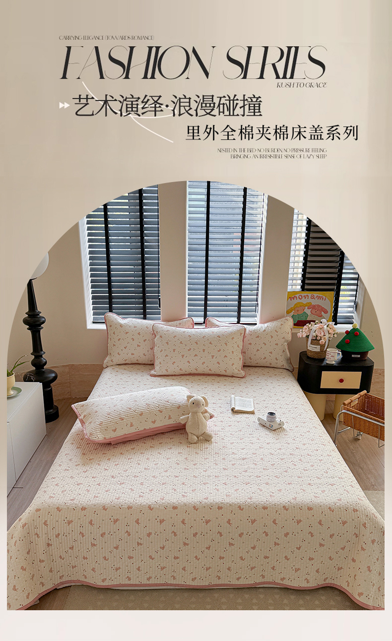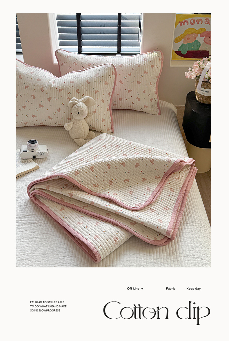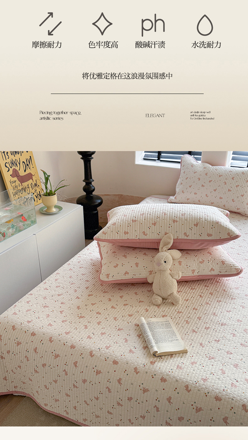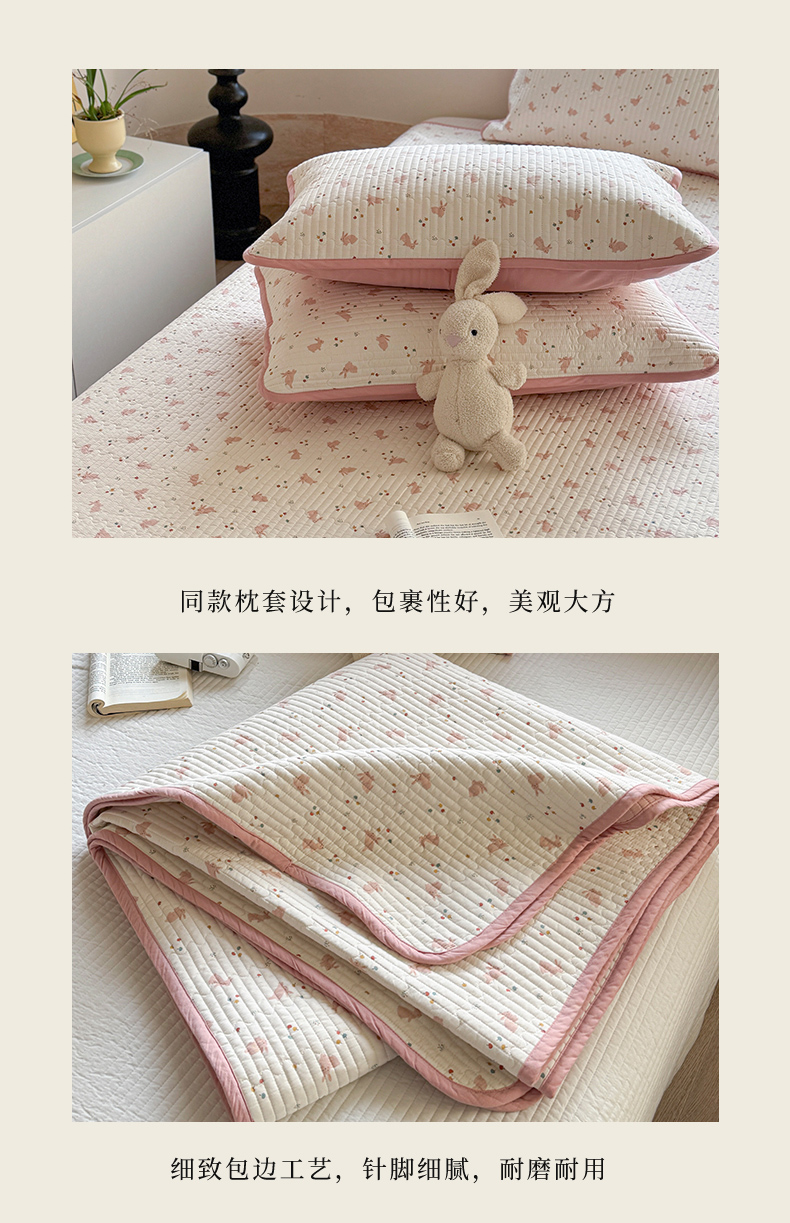 茉夕家纺 2025新款里外全棉夹棉床盖系列 小粉兔