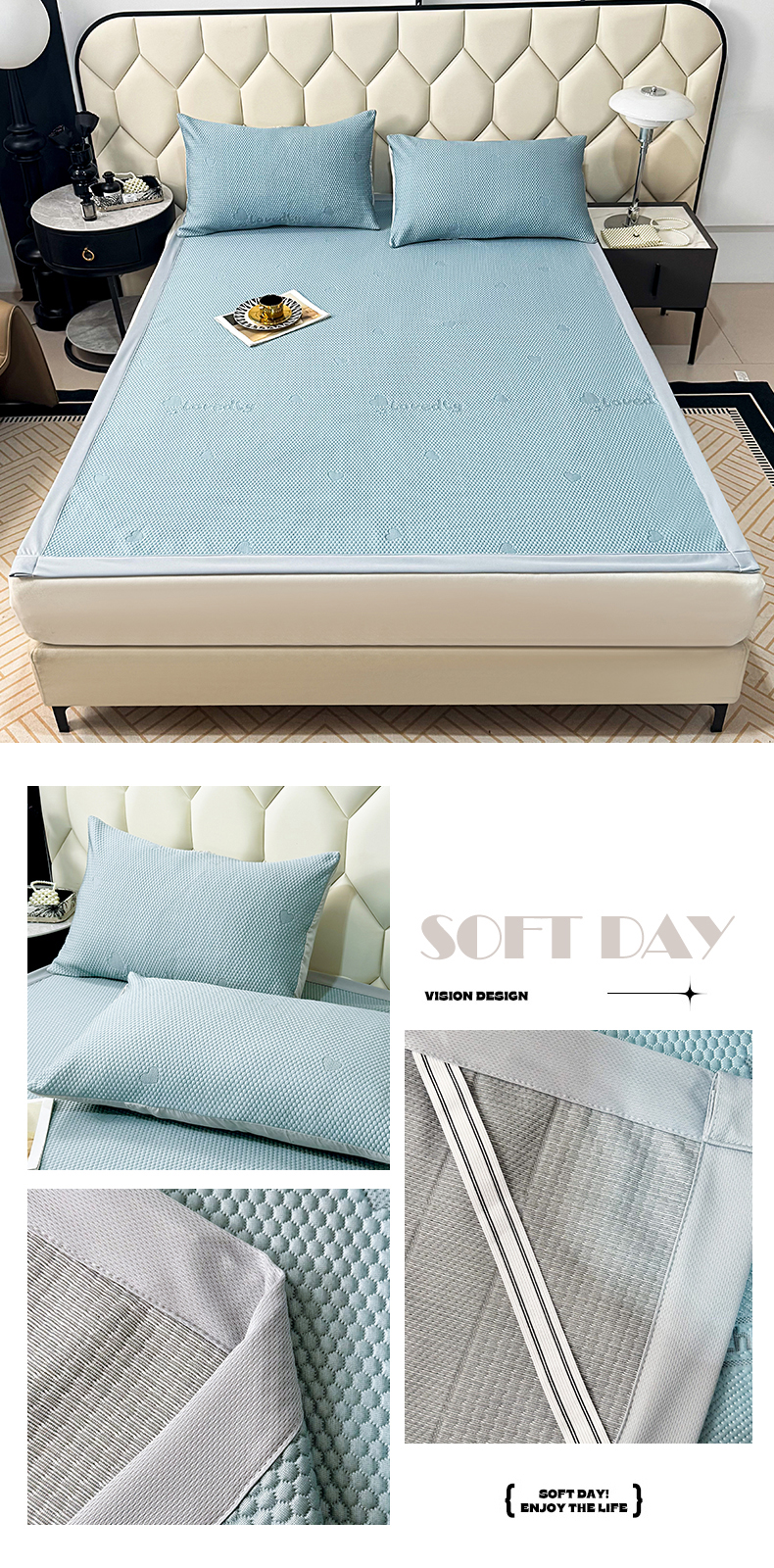 席皇后 2025新款亲肤简约纯色豆豆床裙款凉席 爱心-蓝