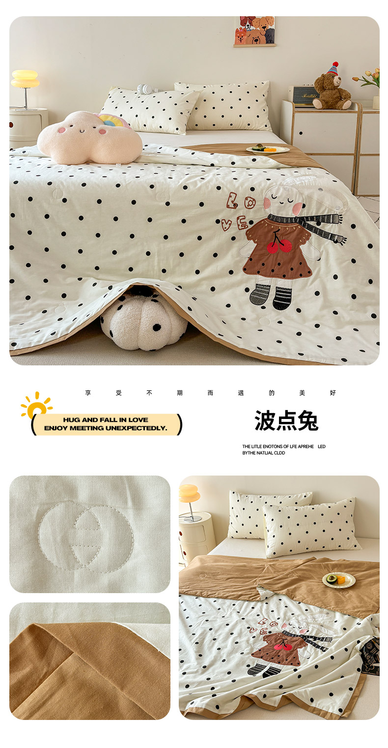 鸣升家纺 2025新款精梳全棉纯棉绣花夏被夏凉被空调被 波点兔